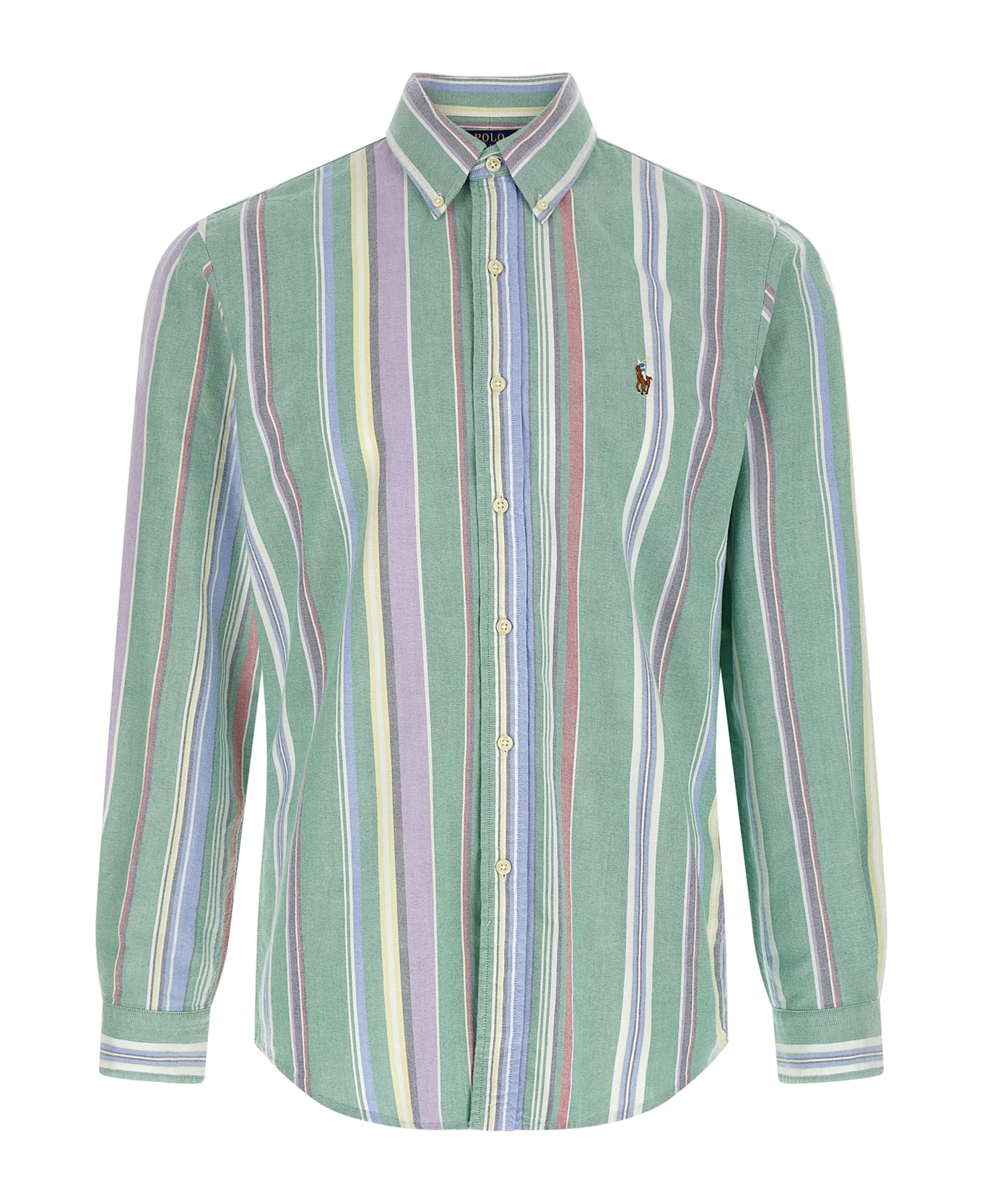 Striped oxford cotton shirt with front logo embroidery, button closure, long cuffed sleeves.