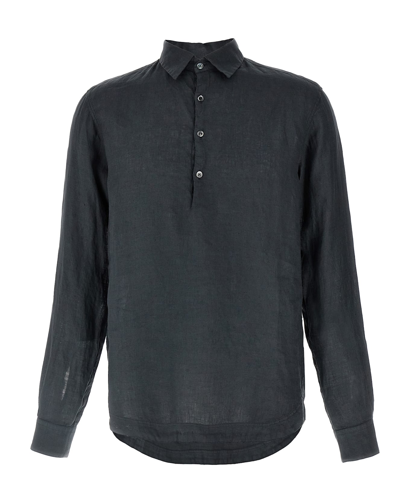 'Pavan' linen shirt, collar and buttons, long cuffed sleeves and side splits.