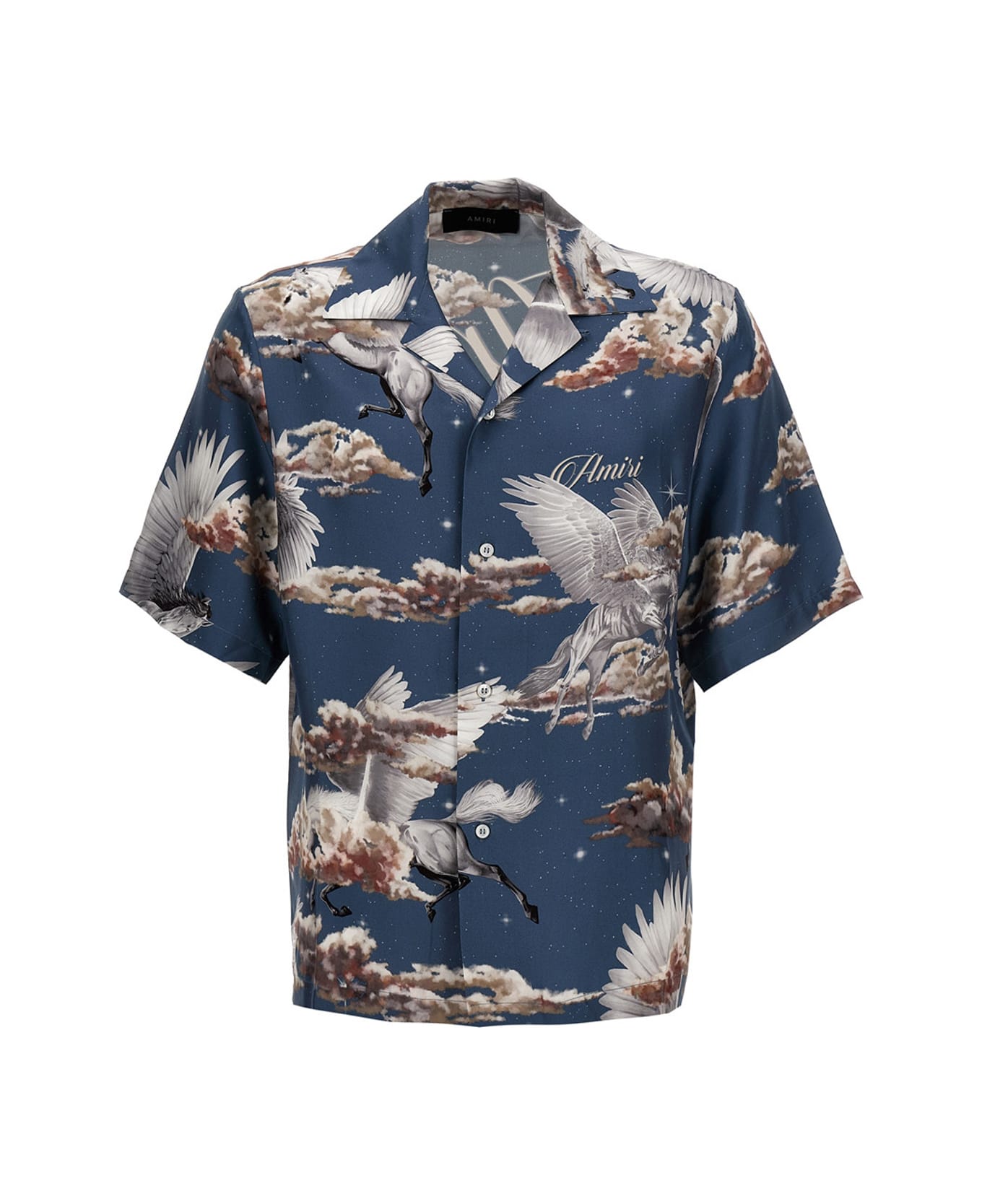 Silk shirt, with all over 'Cashmere' print, a button closure, and short sleeves.