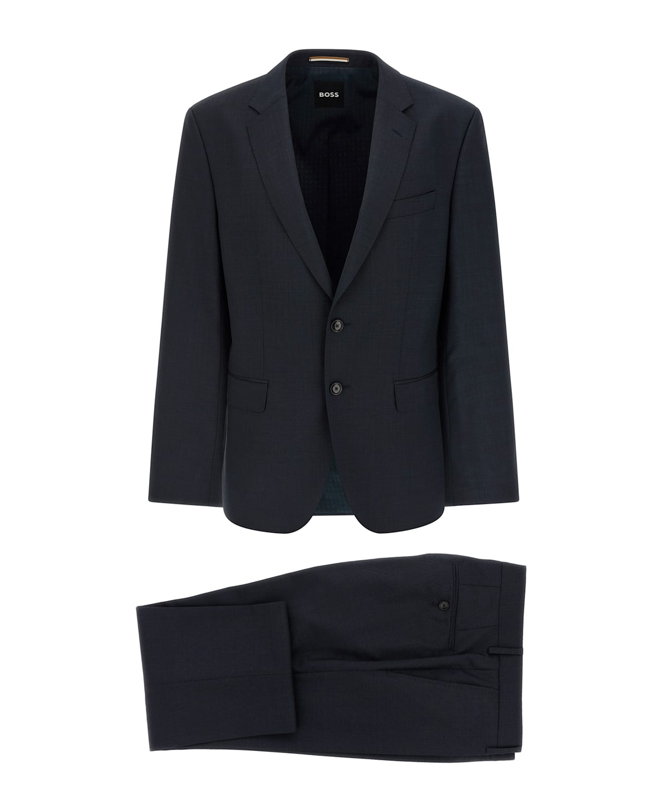 'Huge' dress - Micro texture virgin wool 'Marzotto' line consisting of single-breasted blazer with front two-button closure, mirror lapels, breast pocket, flap pockets, structured shoulder strap, buttonhole cuffs, back vents, monogram lining, two inner pockets and stretched pleat trousers, front pockets' americane', back welt pockets, front zip and hook closure, viscose lining.