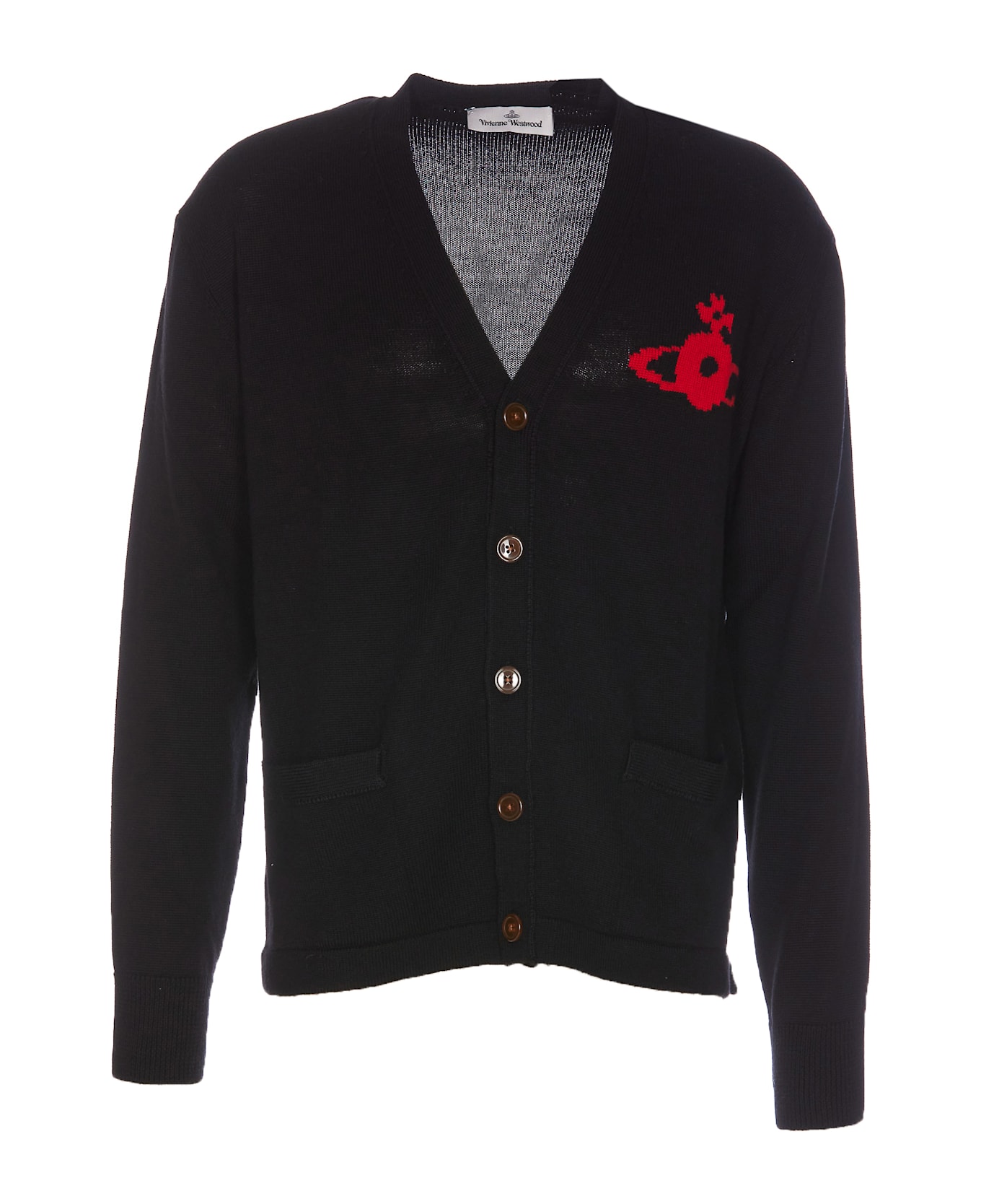 Vivienne Westwood black Alex cardigan with frontal buttons closure, long sleeves, embroidered Orb logo on the front, frontal pockets Composition: 100% Virgin Wool
