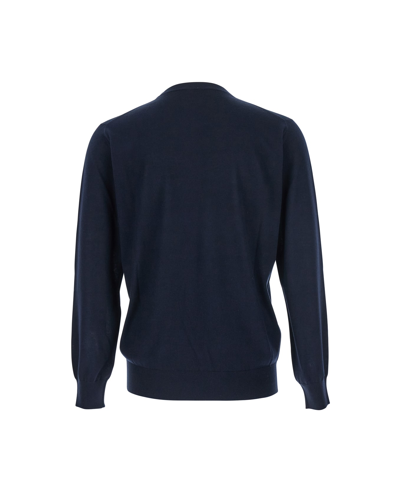 Blue Crewneck Sweater With Ribbed Trims In Wool Man