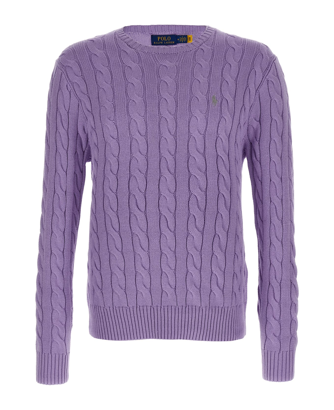 Cotton sweater with texture effect braids, front logo embroidery, crew neck, long cuffed sleeves.