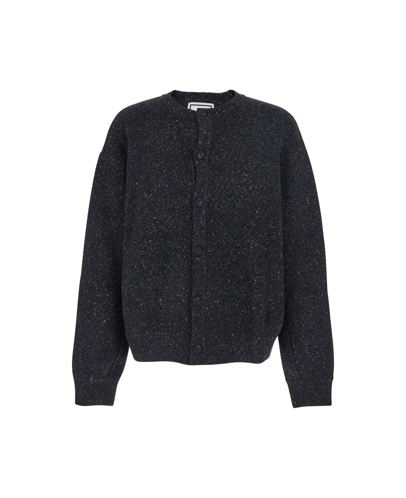 Cardigan Grey Crewneck Long sleeves Front button closure Straight hem Wool blend Regular fit