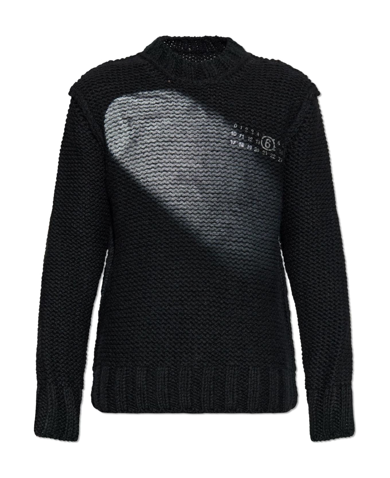 Imbued with conceptual artistry, this sweater from MM6 Maison Margiela redefines modern sophistication. The piece boasts a classic, slightly tailored silhouette and features distinctive, pronounced ribbed trims along the cuffs, hem, and neckline, ensuring a refined structure that elevates everyday dressing. Crafted from an exquisite, substantial knit composed exclusively of the finest wool, this sweater is an embodiment of comfort and enduring warmth. The forward-thinking design is punctuated by a striking circular light spot motif in soothing gray hues at the upper left chest, seamlessly integrated with the brand's iconic graphic numeral the circled number 6 prominently signifying the men's collection. Why choose this product? Luxurious, high-quality wool offers exceptional softness and warmth Avant-garde print with signature Maison Margiela visual language Expertly tailored fit with bold ribbed elements for an elevated silhouette Iconic design that merges contemporary artistry with everyday wearability
