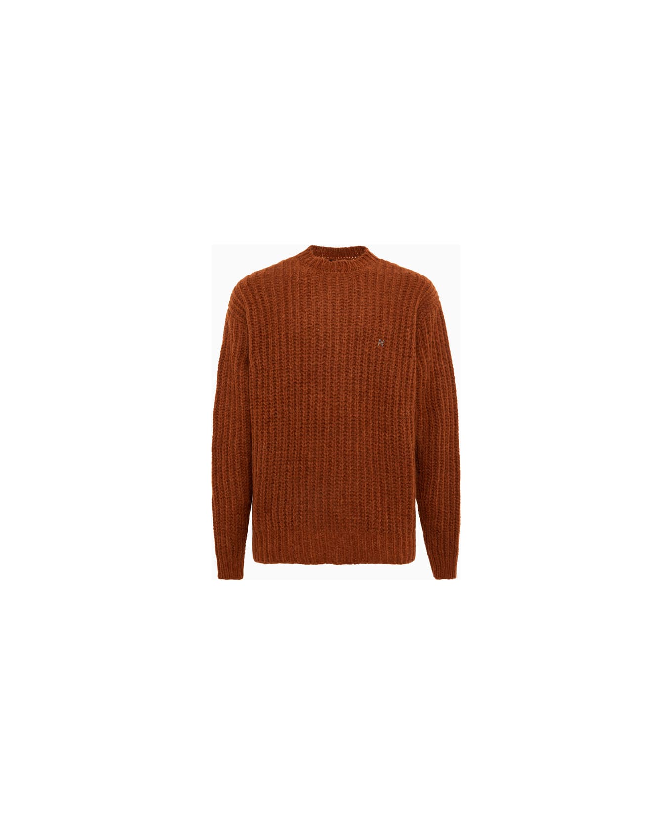 solid color mohair blend crew neck sweater. loose-rib knit texture with a slight peele effect. long sleeves with slightly dropped shoulders. ribbed collar, cuffs and bottom. metal 'r' logo at chest. loose fit. composition 42% acrylic 30% polyamide 14% wool 14% mohair.