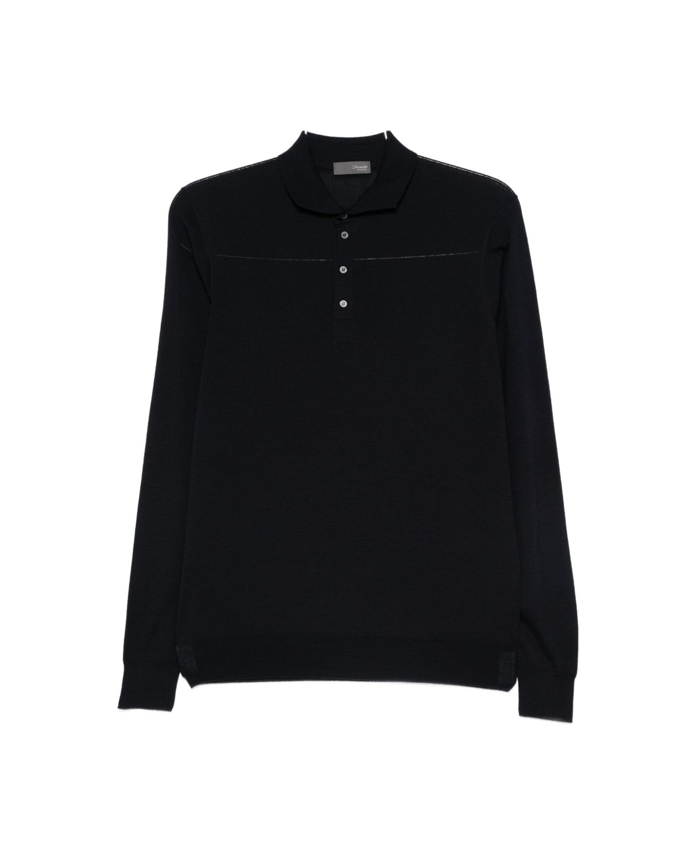 Drumohr Blue merino wool polo shirt with collar and front button closure, long sleeves