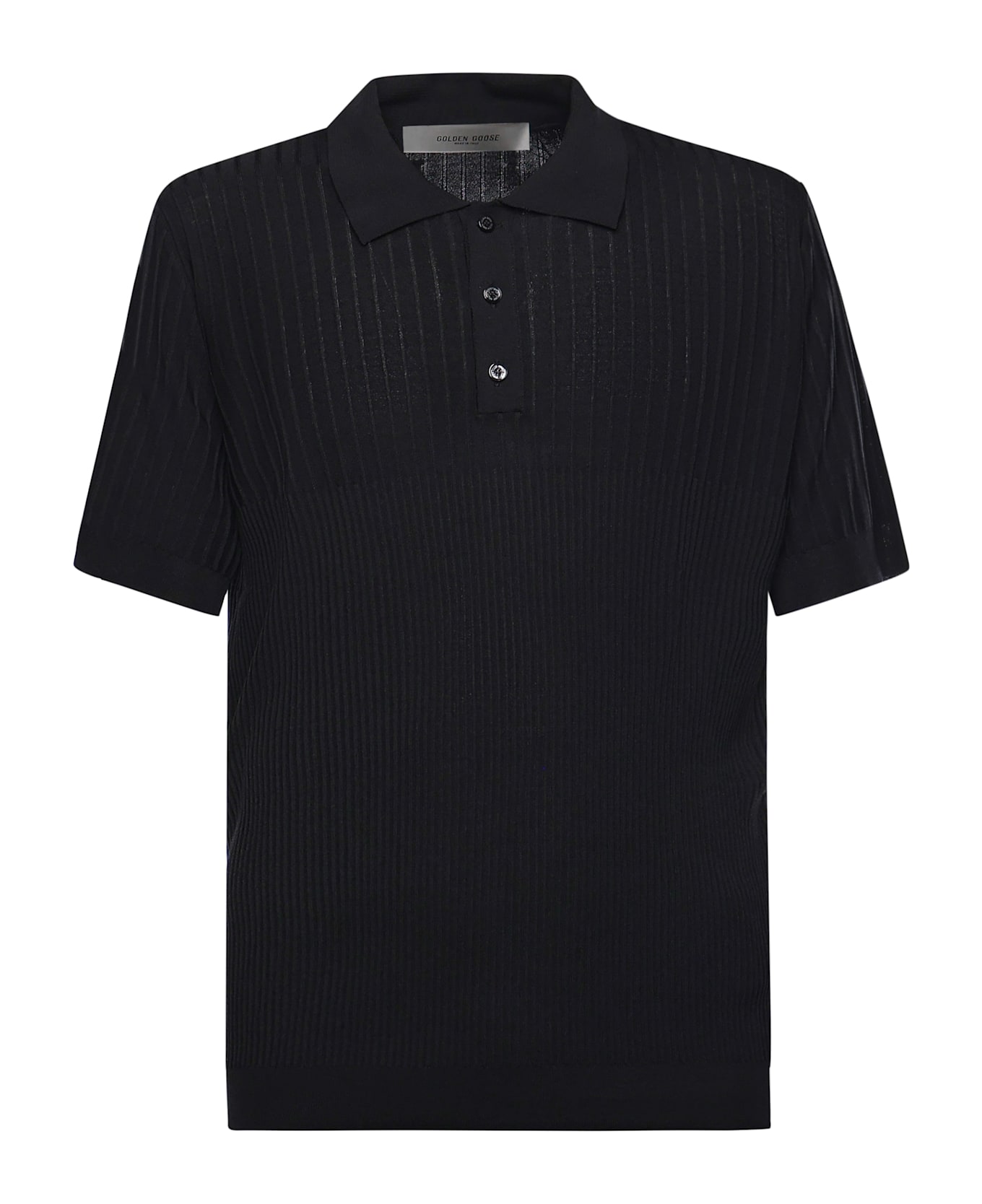 -Made of a viscose blend -Short sleeves -Partial button placket -Regular fit -Size shown is M -Made in Italy -Color: Black
