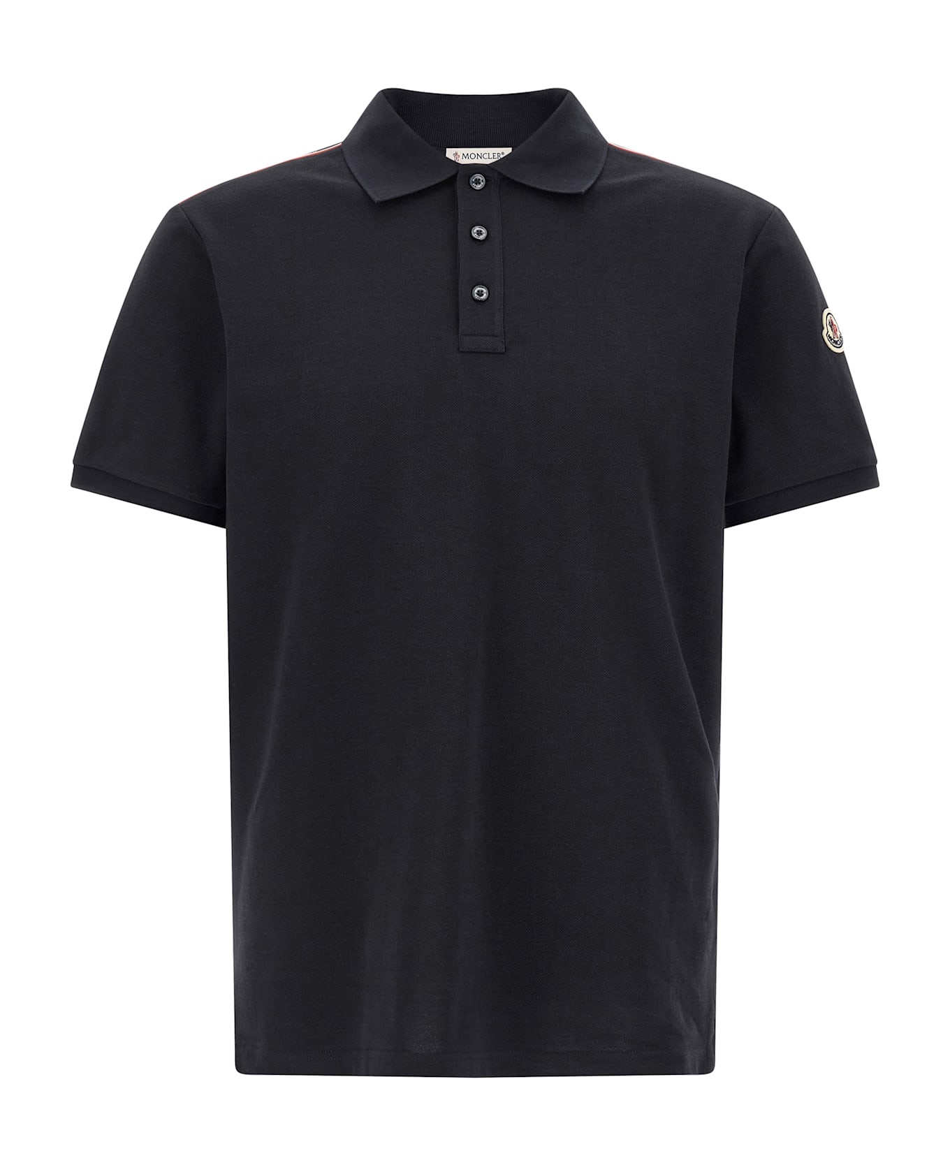Piqué cotton polo shirt with shirt collar, 3-button front closure, 3-color finish detail on the shoulders, side splits, short sleeves with logo patch.