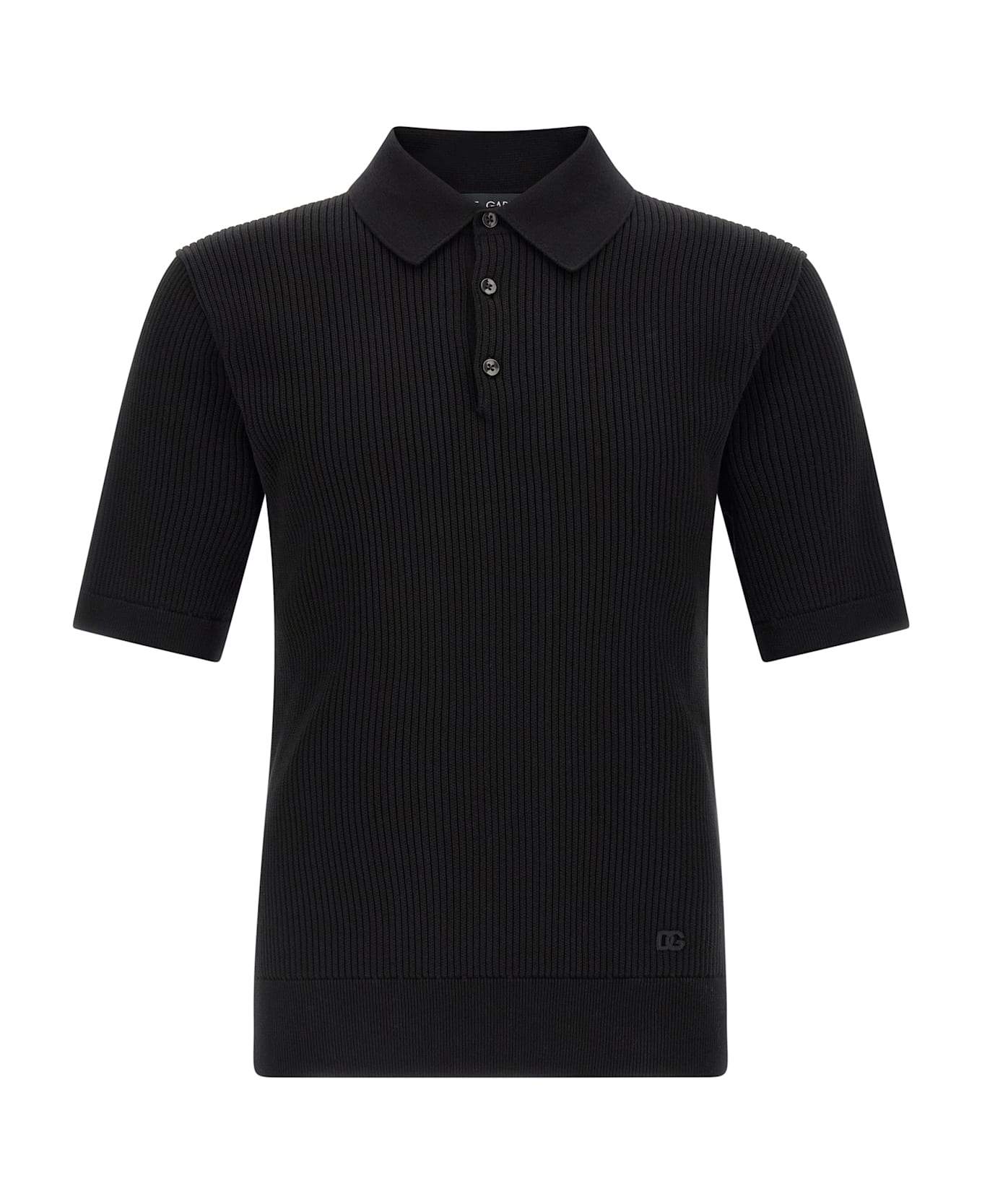 Micro-ribbed cotton polo shirt, tone-on-tone crossed 'DG' logo patch on the front, collar and buttons, short sleeves with cuffs, and band on the hem. Composition: 100% cotton