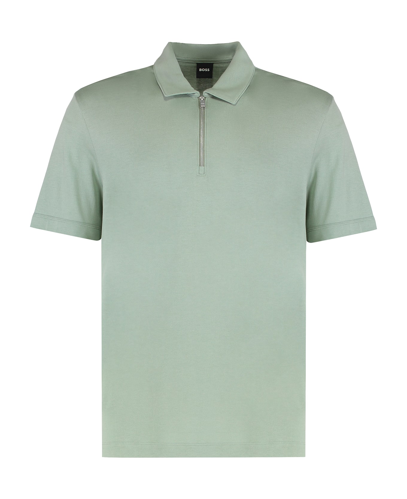 Short-sleeve polo in a delicate green color. it features a classic collar and a zip closure. the design is simple and versatile, suitable for various occasions, from casual to semi-formal. made with soft materials to ensure comfort throughout the day. perfect to pair with trousers or jeans for an elegant and relaxed look.