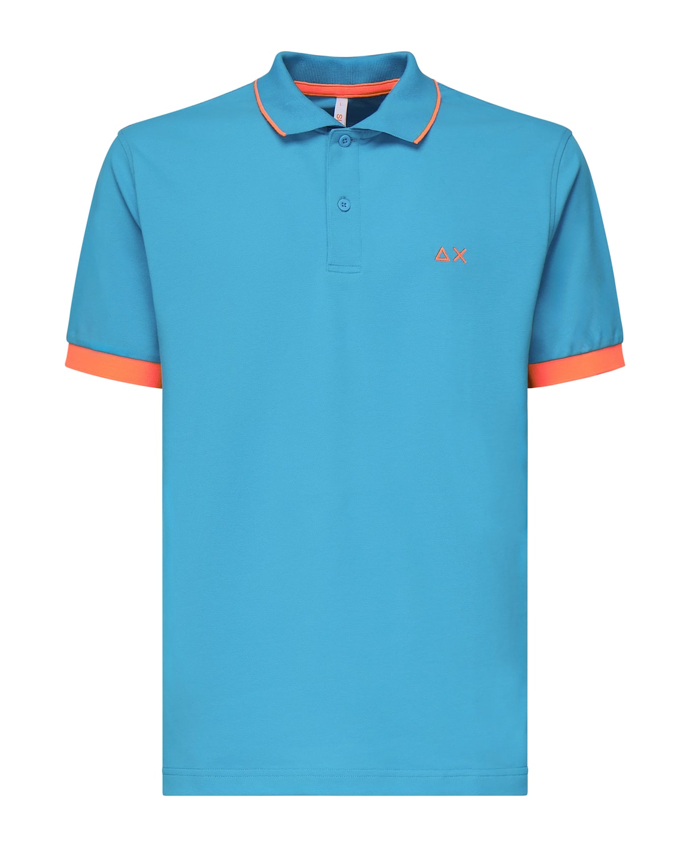 -Made of stretch cotton pique -Half sleeves with contrasting fluorescent edges -Button closure -Collar with contrasting fluorescent edges -Logo embroidery on the chest -The size shown in the photo is L -Color: Turquoise, Orange