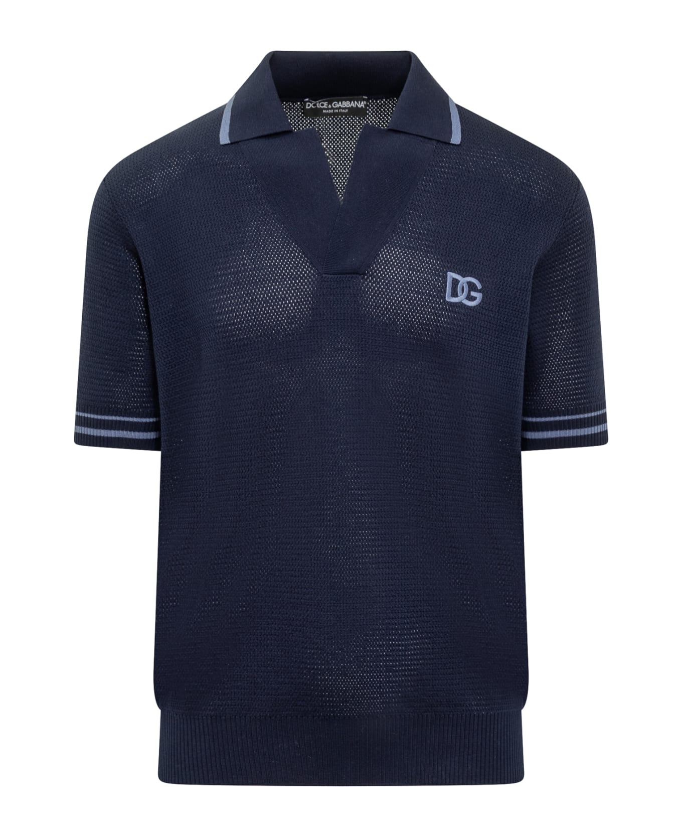 Short-sleeved polo. Classic collar. Button closure. Openwork knit. Logo applied on the front. Composition: 100% Cotton -, 100% Polyester