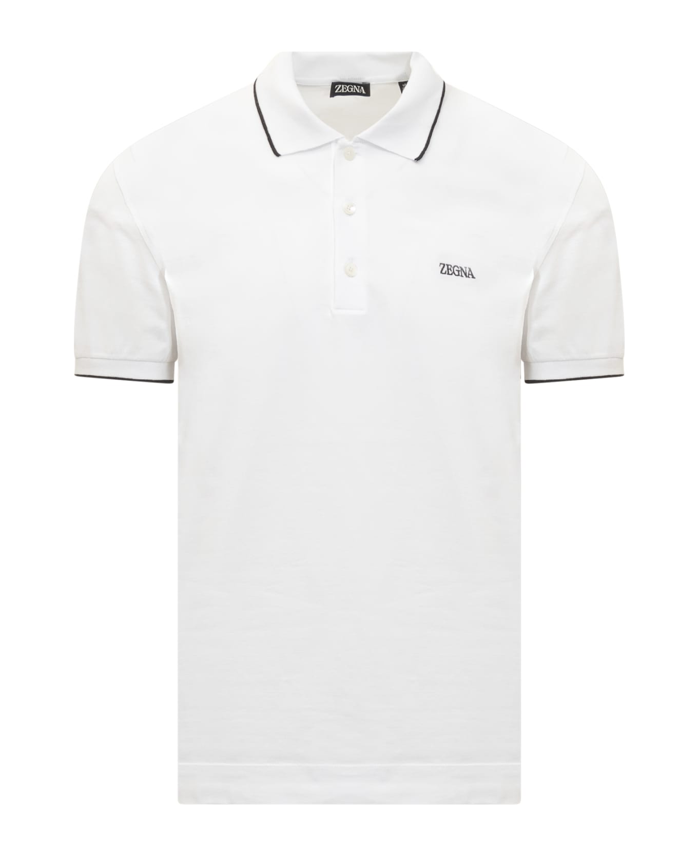 Short-sleeves polo. Embroidered logo on the chest. Classic collar. Closure with buttons. Composition: 95% Cotton, 5% Elastane