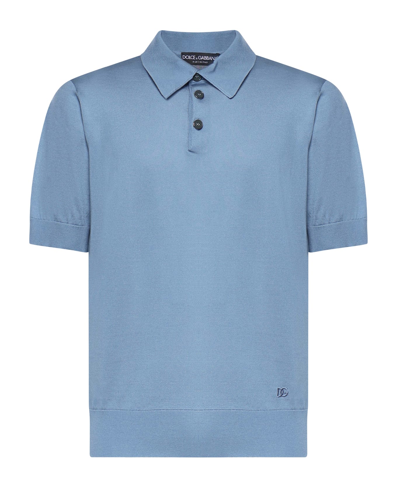 - Polo collar - Partial button closure - Short sleeves - Made in Italy - Size shown is 50 - Color: Light Blue