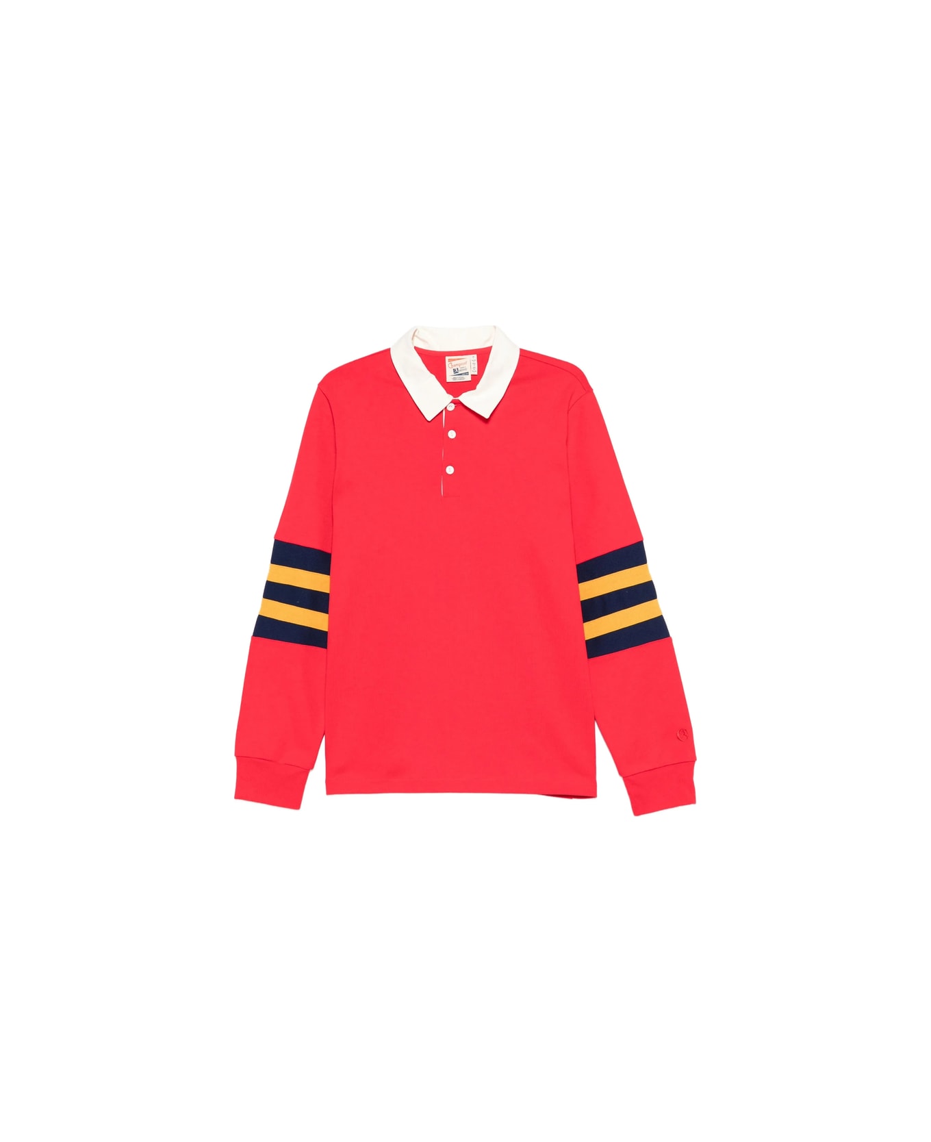 red stripe detail polo collar front button placket long sleeves embroidered logo