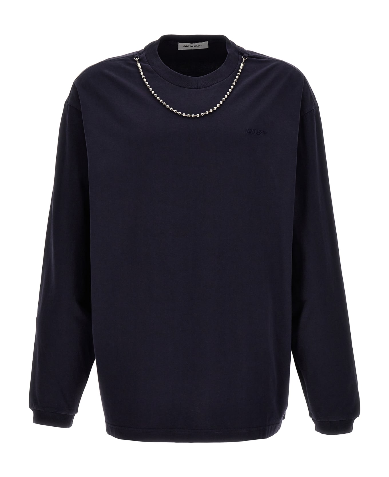 'Ballchain' cotton crew neck t-shirt with metal necklace and long sleeves.