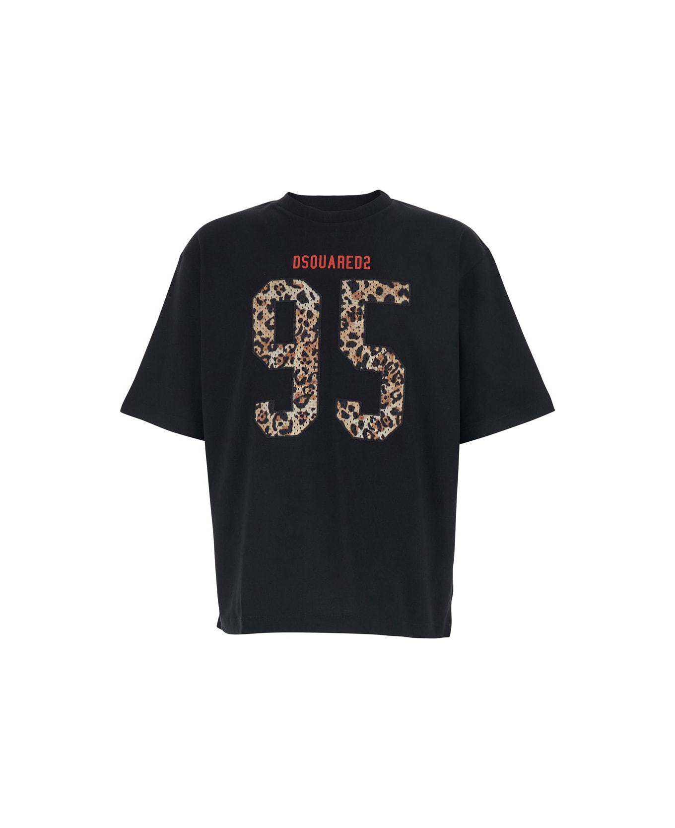 T-shirt Black Crewneck Short sleeves Maxi logo on the front Straight hem Cotton Relaxed fit
