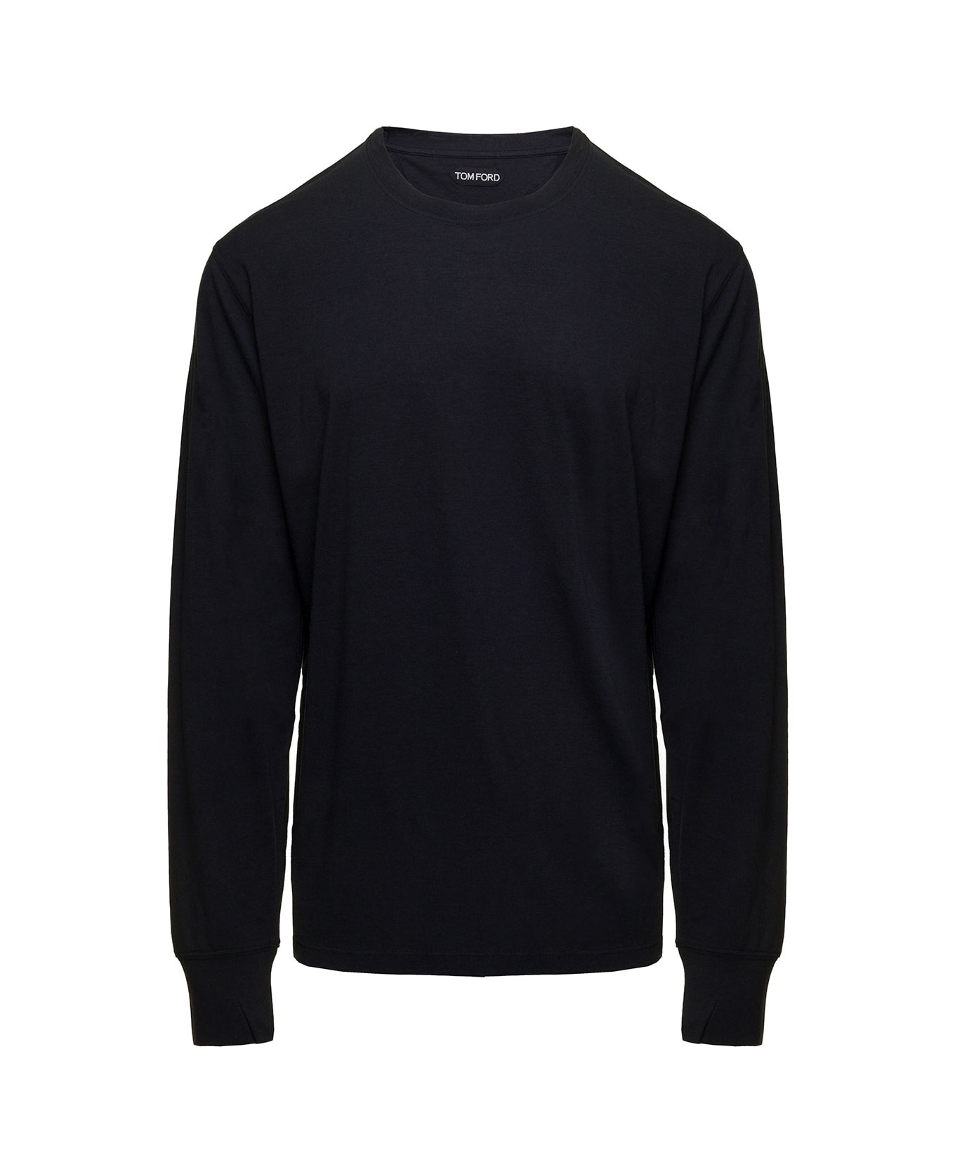 Top Crewneck Long sleeves with cuffs Straight hem Ribbed trim Tonal TF logo embroidery at the front Black Cotton blend Relaxed fit