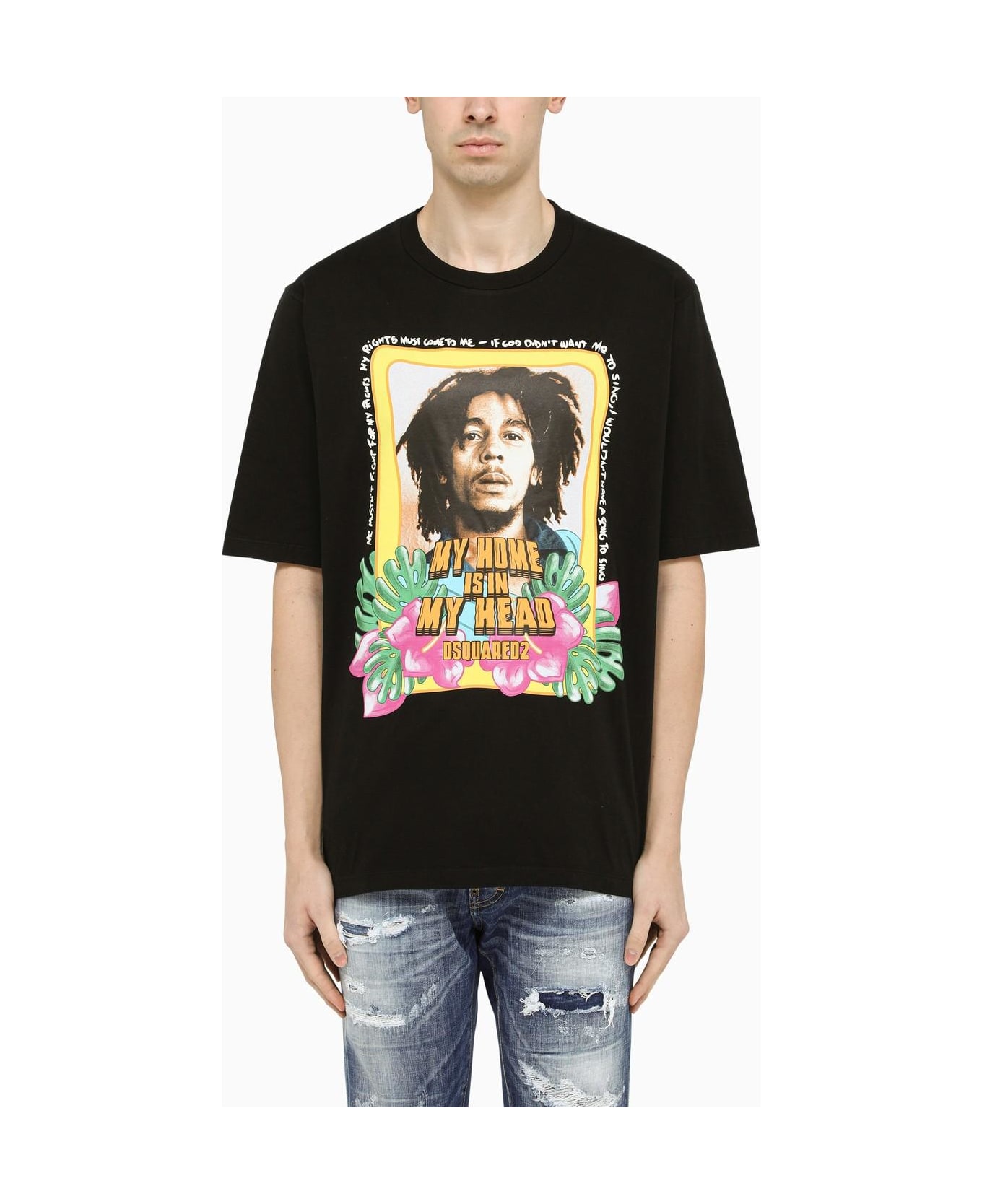 Oversize black jersey T-shirt from Dsquared2 featuring a graphic print, short sleeve and straight hem.