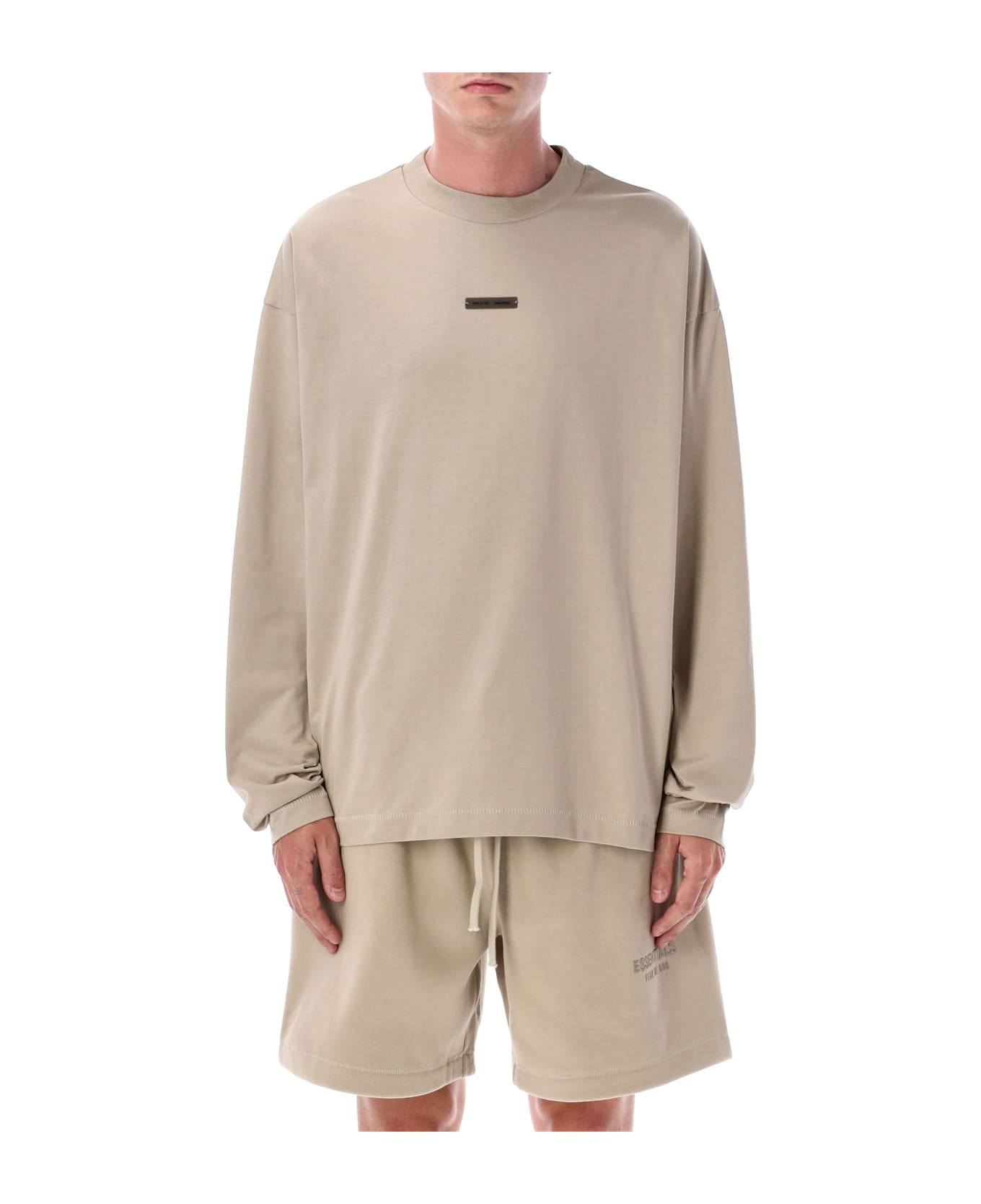 Classic Cotton Long Sleeves T-shirt By Essentials Fear Of God. Featuring: Ribbed Crew Neck Long Sleeves Dropped Shoulders "fear Of God Essentials" Translucent Rubberized Label At The Center Front "essentials Fear Of God" Beveled Metallic Logo Across The Back Relaxed Fit Model Is 1,90 M And Wears Size L