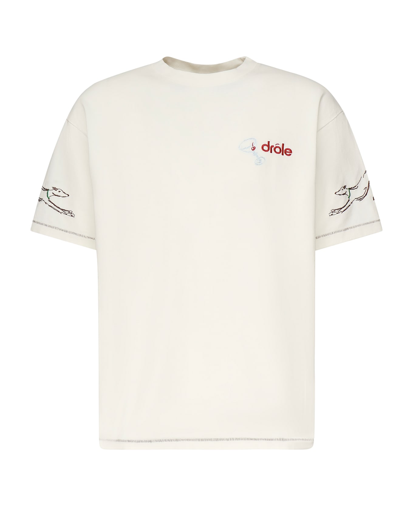 -Made of cotton jersey -Crew neck -Short sleeves -Embroidery on the front and sleeves -Made in Italy -The size shown in the photo is M -Color: Off-White