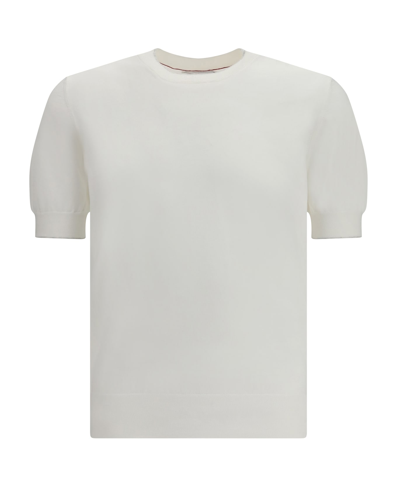 The cotton t-shirt by brunello cucinelli is a garment with a sophisticated, contemporary style. the contrasting ribbed crew neck and ribbed hems on the sleeves and bottom add distinctive details and a touch of originality. the monochrome design gives a clean and elegant look, ideal for those seeking a simple yet refined look. made of cotton, the t-shirt is comfortable and breathable, perfect for warmer days. the combination of classic elements and modern details makes this garment a versatile option for a variety of casual and fashionable outfits.