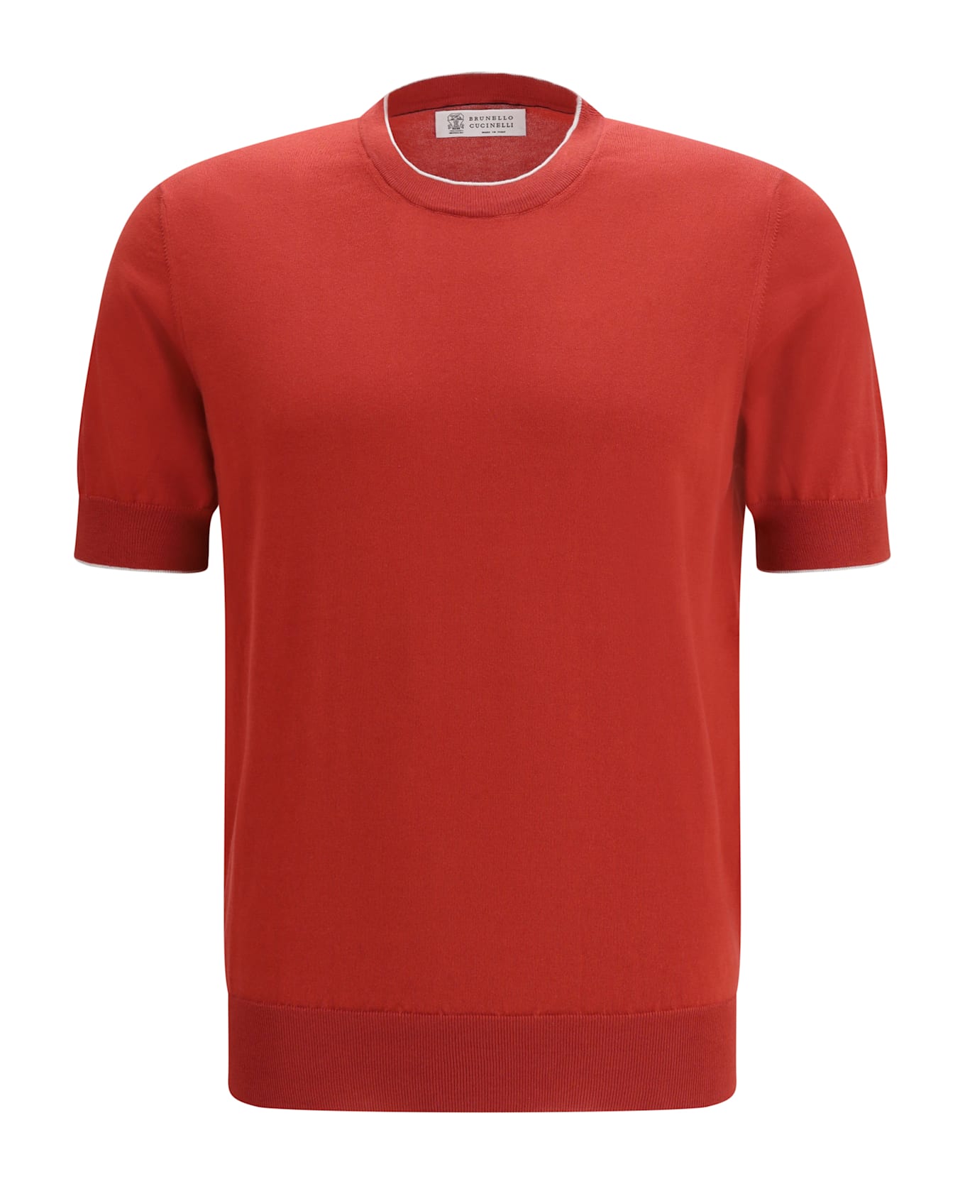 The cotton t-shirt by brunello cucinelli is a garment with a sophisticated, contemporary style. the contrasting ribbed crew neck and ribbed hems on the sleeves and bottom add distinctive details and a touch of originality. the monochrome design gives a clean and elegant look, ideal for those seeking a simple yet refined look. made of cotton, the t-shirt is comfortable and breathable, perfect for warmer days. the combination of classic elements and modern details makes this garment a versatile option for a variety of casual and fashionable outfits.