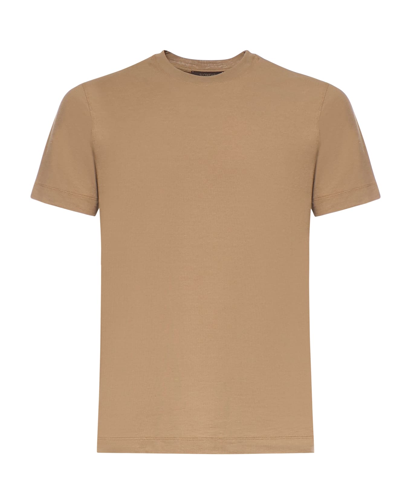 -Made of pure cotton -Round neck -Short sleeves -Regular fit -Size shown is 48 -Made in Italy -Color: Beige