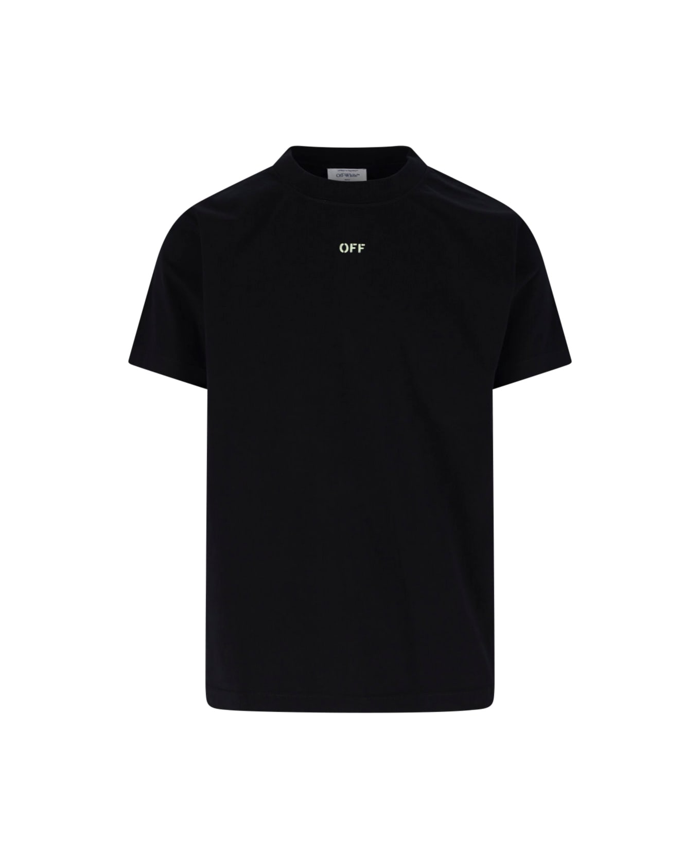Off-White 'Croco Arrow' logo t-shirt in black cotton with crew neck, short sleeves, green logo print on the chest, green maxi Arrow logo print on the back, crocodile print detail detail, straight hem.