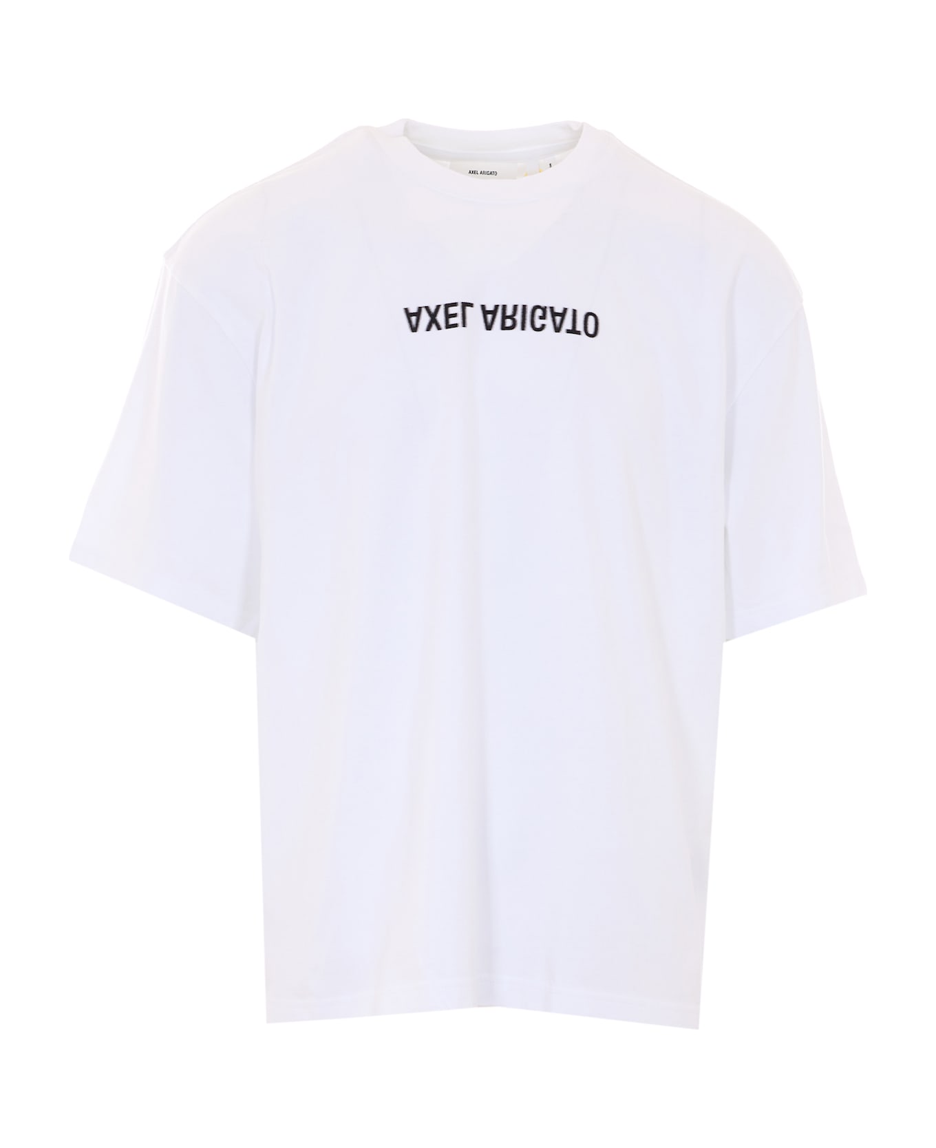 Axel Arigato white Distort washed t-shirt, crewneck, mirror print logo on the front, oversize fit
