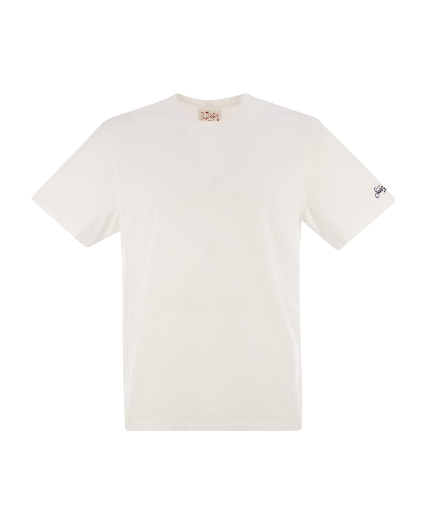 Presenting the Dover crew-neck t-shirt, made from 100% cotton and available in a variety of solid colours. This essential garment features the exclusive Saint Barth logo embroidered on the left sleeve, adding a touch of sophistication to your everyday wardrobe. Versatile and stylish, the Dover T-shirt is perfect for any occasion, perfectly blending comfort and casual elegance. - Cotton jersey T-shirt - Garment dyed - Crew neck - Exclusive St. Barth embroidery on sleeve - Classic fit DESIGNER ID: DOV0009 00049H