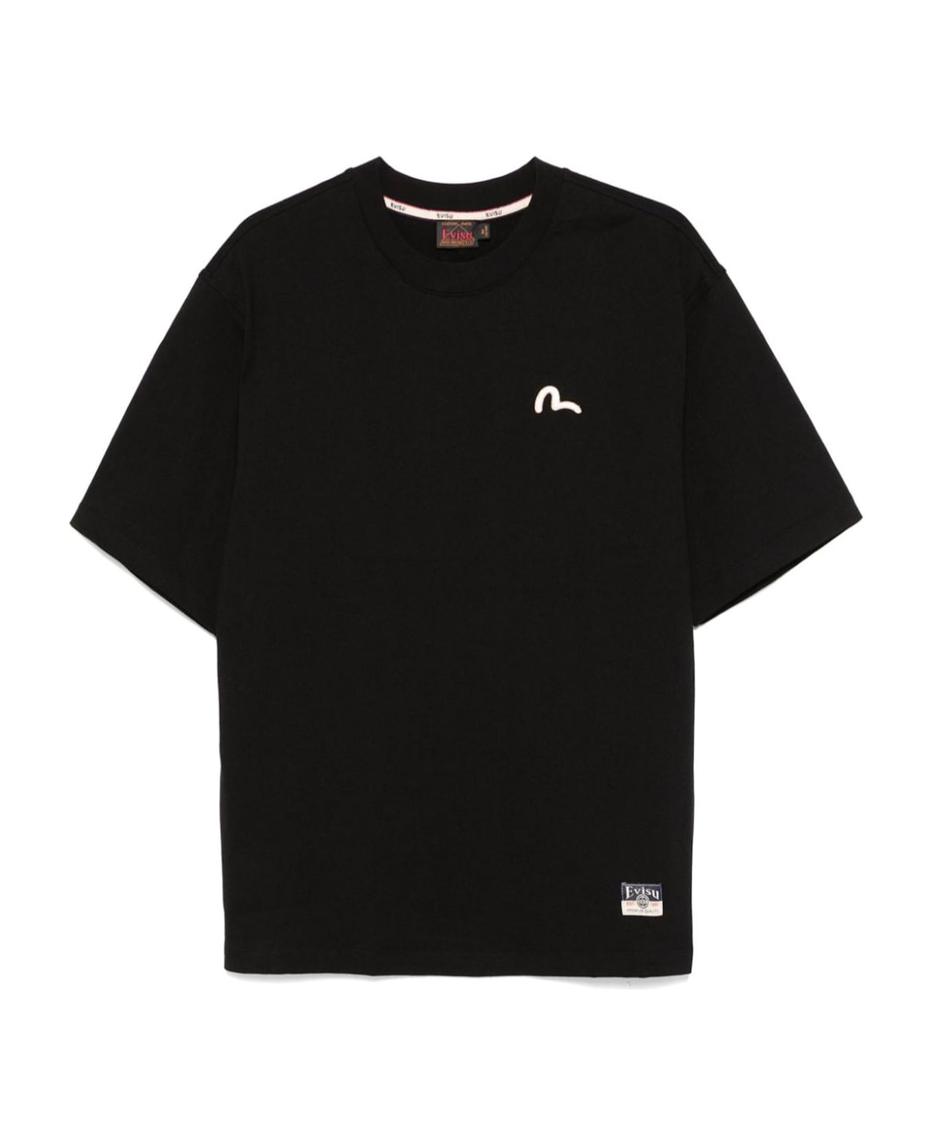 Black cotton jersey texture T-shirt, embroidered logo at the chest, crew neck, short sleeves, logo patch to the front, carp print to the rear, logo print to the rear, straight hem Composition: Cotton, 100%