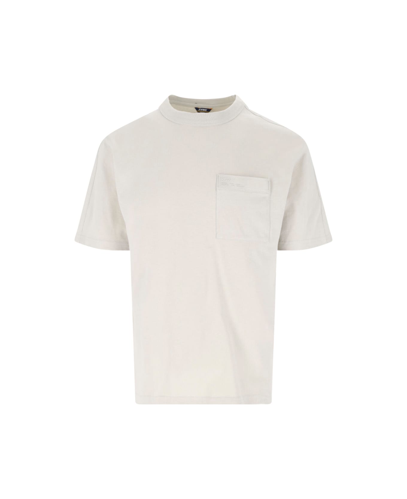 K-Way Fantome beige cotton T-shirt with crew neck, short sleeves, flat chest pocket, tone-on-tone logo embroidery detail, straight hem.