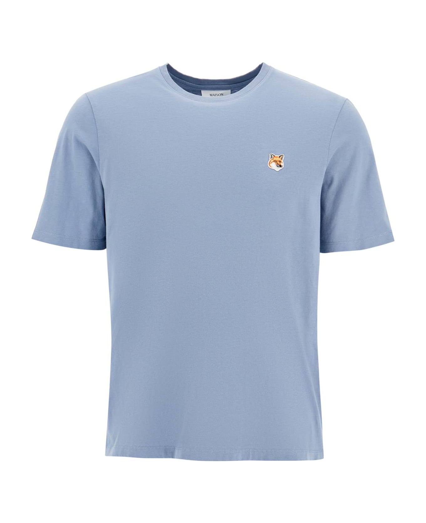 Maison Kitsuné crew-neck t-shirt in light cotton jersey, detailed with the iconic Fox Head embroidered on the chest. Relaxed fit, micro ribbed neck. The model is 187 cm tall and wears a size L.