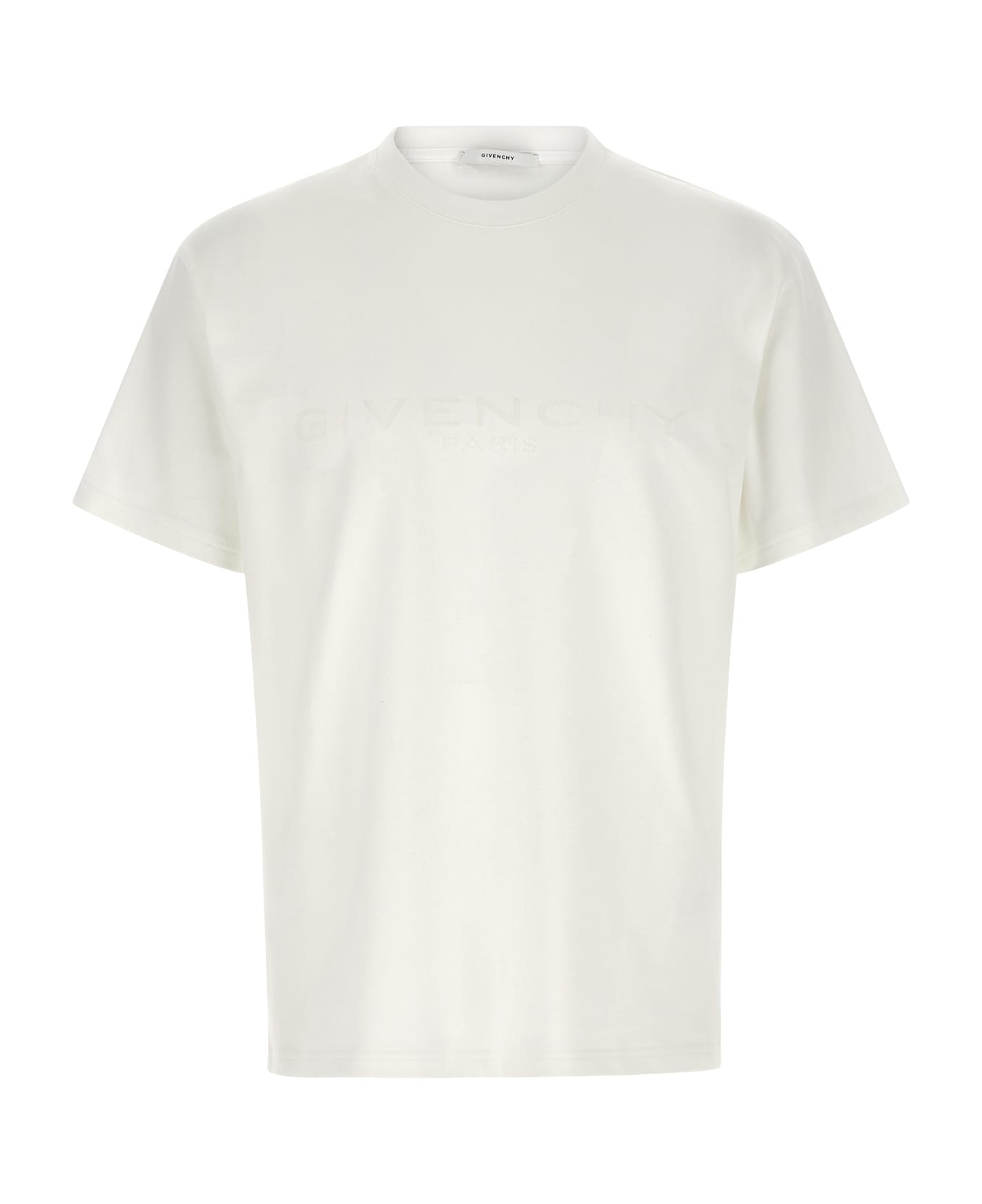 Cotton and silk t-shirt with tone-on-tone GIVENCHY Paris jacquard on the front, crew neck, and short sleeves. Composition: 82% cotton, 18% silk