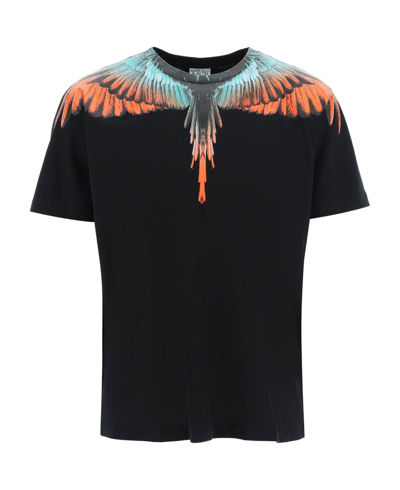 Marcelo Burlon short-sleeved t-shirt in cotton jersey, enriched by Icon Wings motif printed at neck and shoulders. Regular fit. The model is 187 cm tall and wears a size L.