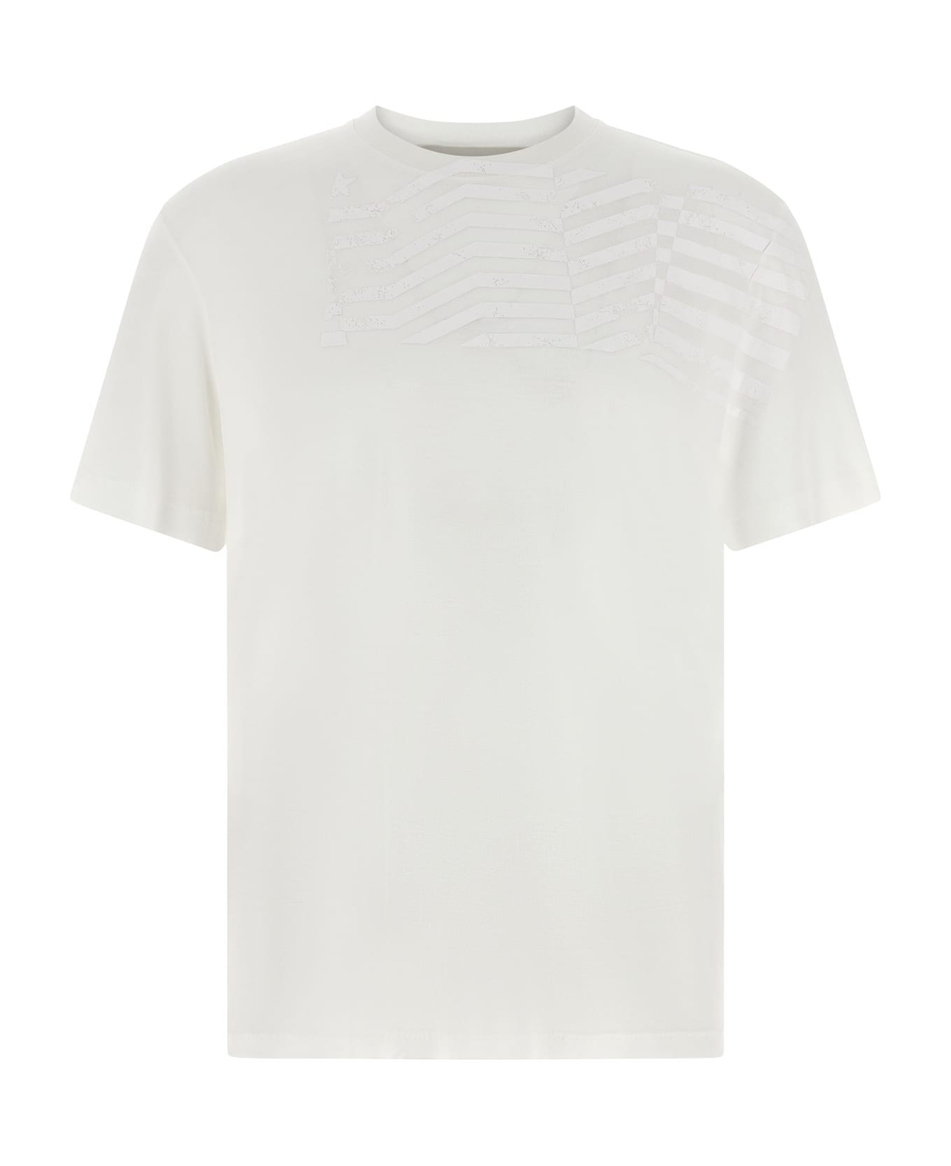 'Journey' T-shirt in light flamed tencel jersey, watercolor effect 'Flag' print with vintage lived-in front effect, crew neck, short sleeves.
