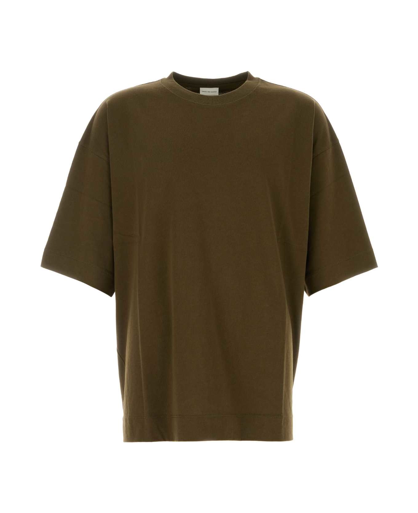 Khaki Cotton Hen Oversize T-shirt from Dries Van Noten