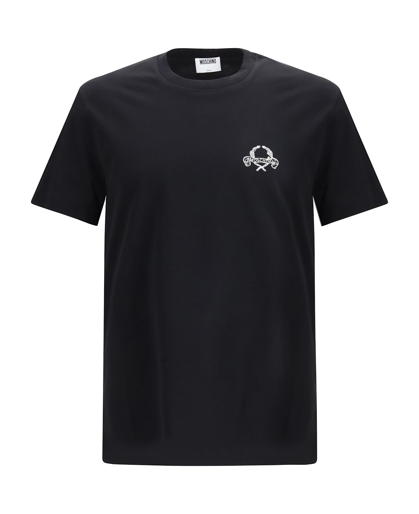 The laurel crown logo t-shirt by moschino is crafted from organic cotton jersey and features an embroidered archive logo with a laurel crown on the front. the short-sleeved, clean design highlights the brand s iconic motif, offering comfort and a distinctive everyday style. Composition: 100% % Cotton