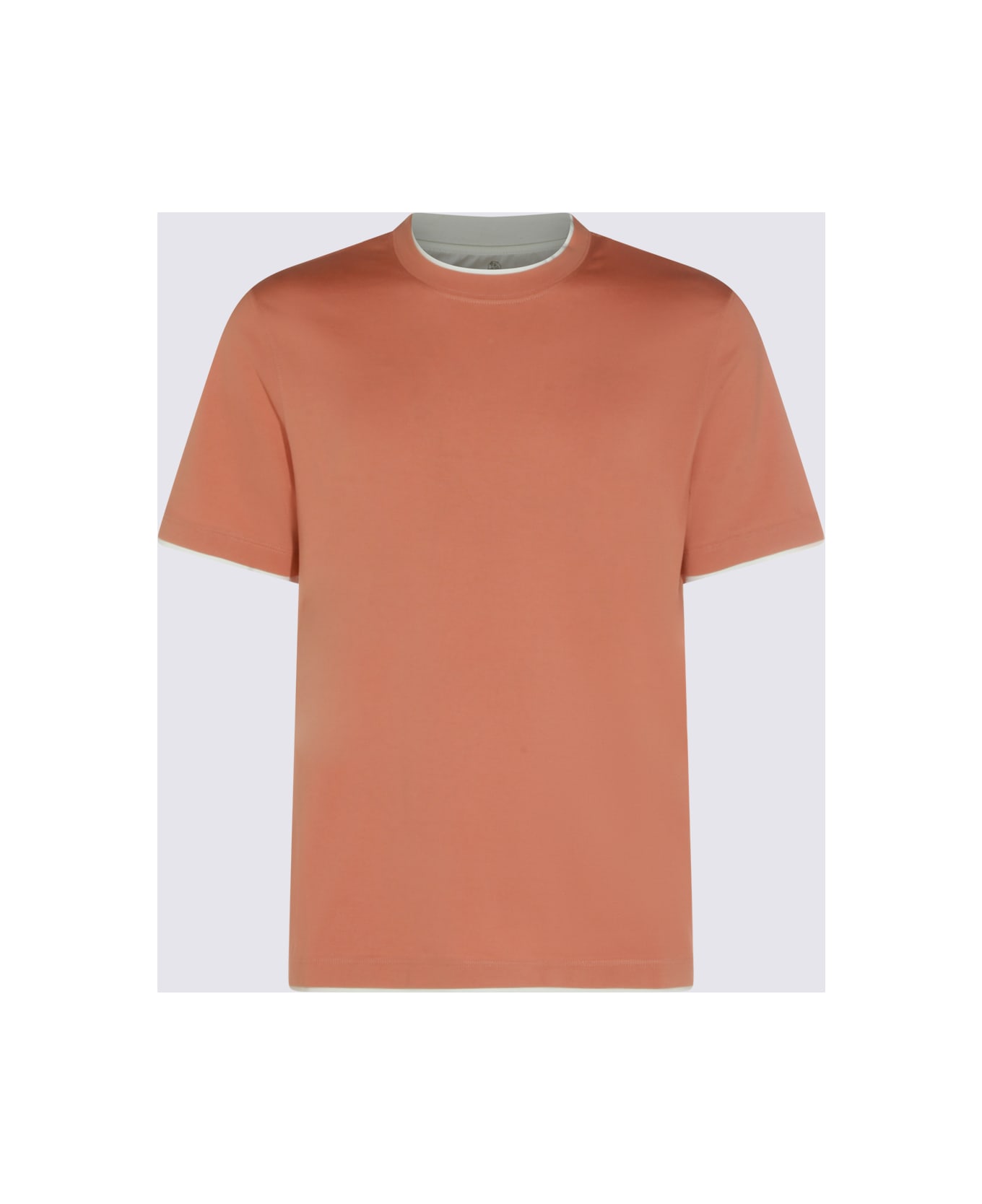 Light orange cotton t-shirt from Brunello Cucinelli featuring crew neck, short sleeves and regular vestibility. Composition: _, 100% Cotton