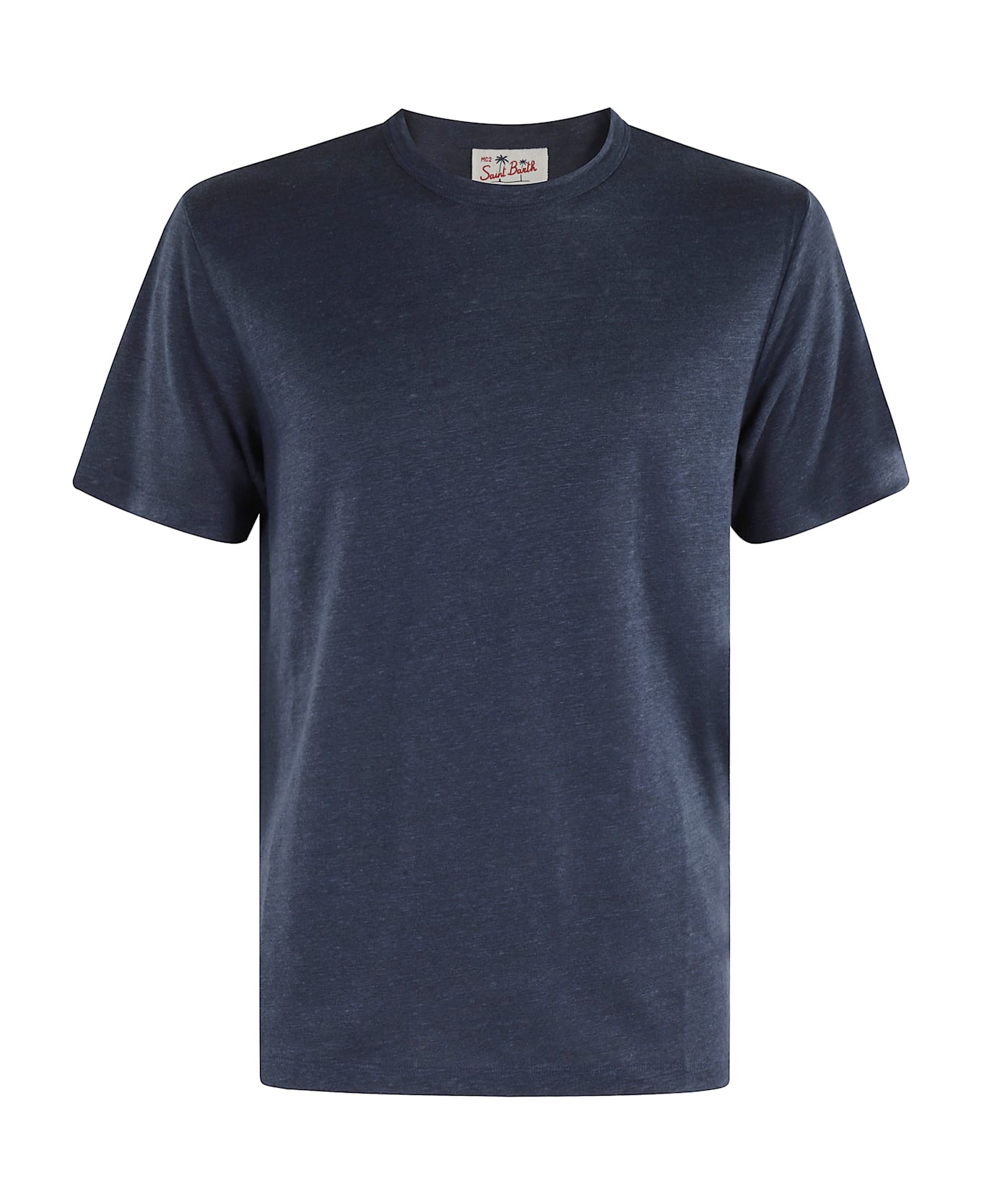 Ecstasea T-Shirt - MC2 Saint Barth - Navy color - Linen fabric - Crew neck - Short sleeve - Embroidered logo on left sleeve - Regular fit