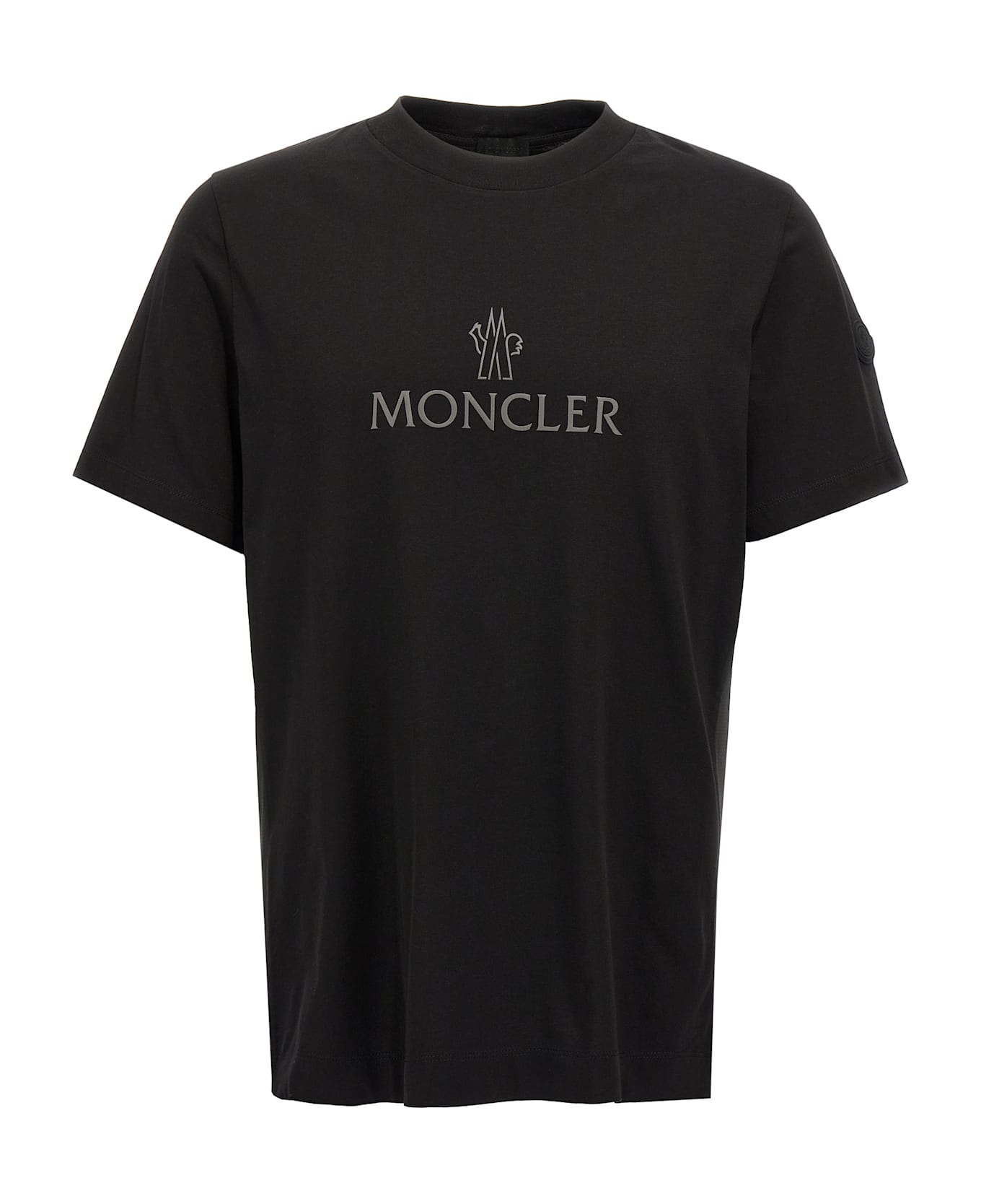 Cotton, crewneck t-shirt with reflective front logo print, side bands in technical fabric, rubberized logo patch on the sleeve.