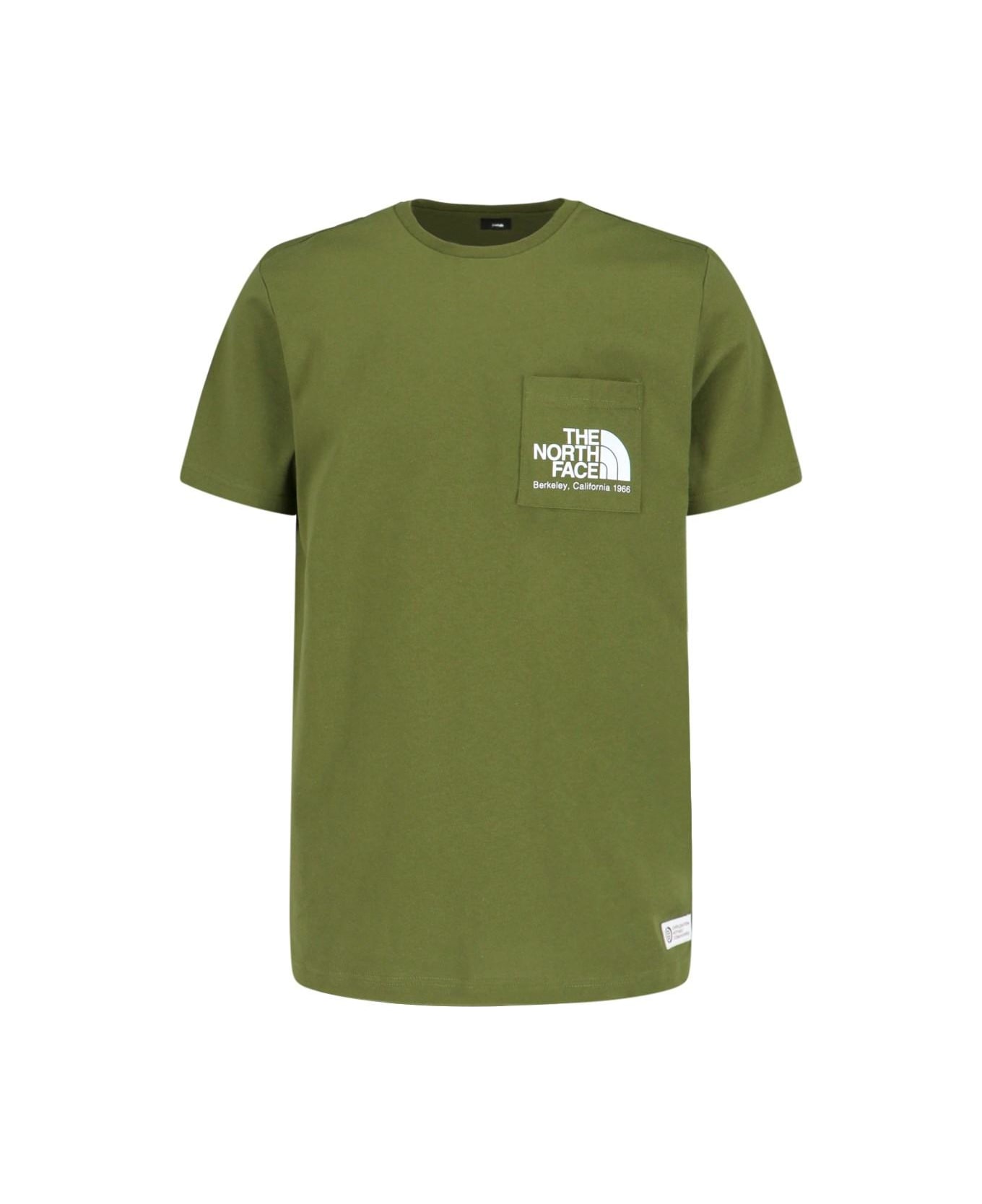 The North Face t-shirt in green cotton with crew neck, short sleeves, chest pocket, white logo print detail on the chest, logo label at the hem, mini logo print on the back, straight hem.