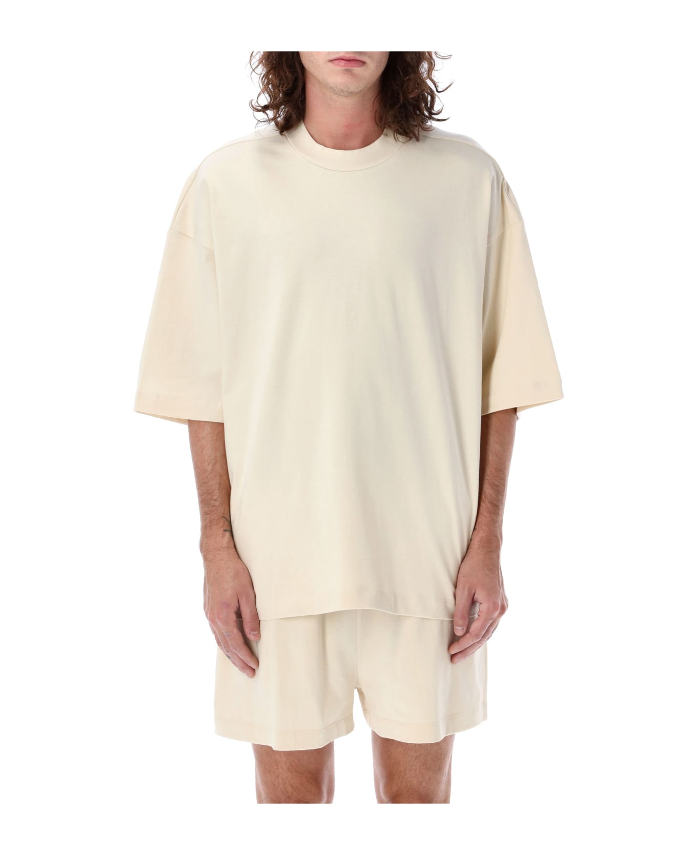 Lounge Tee By Fear Of God. Featuring: Ribbed Knit Collar Length Sleeves Relaxed Fit Logo Tab At Back Model Is 1,90 M Tall And He Is Wearing Size L
