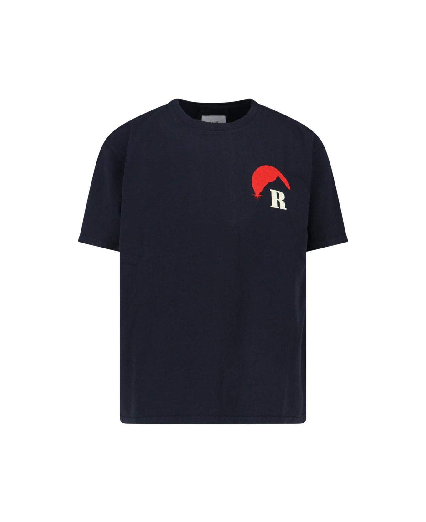 Rhude 'Moonlight' black cotton crew neck t-shirt with short sleeves, logo print on the front, maxi multicolor logo print on the back, ribbed trims, straight hem. Composition: 100% Cotton