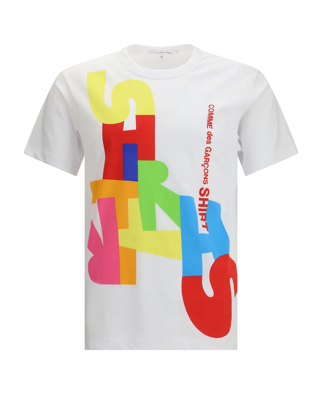 The comme des garçons t-shirt, a piece that blends sophistication with modern style. crafted from a high-quality material mix, this short-sleeved, crew-neck tee and a multicolor print on the front is perfect for those seeking a casual yet elegant look. ideal for any occasion, this white t-shirt brings a minimalist touch to your wardrobe.