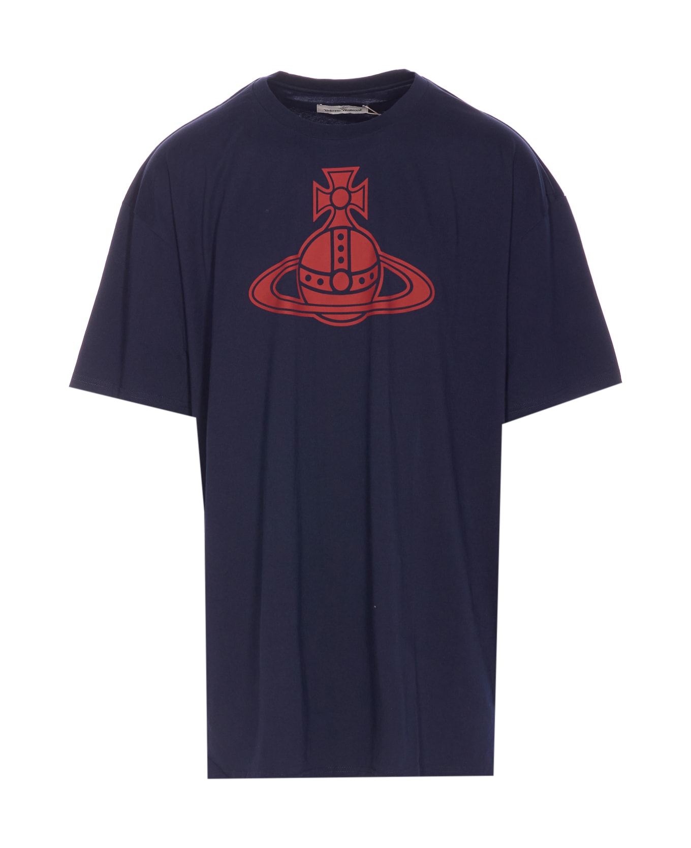 VIivienne Westwood blue Paris Orb oversize t-shirt, crewneck, print Orb logo on the front, oversize fit Composition: 100% Cotton, 98% Cotton, 2% Elastane