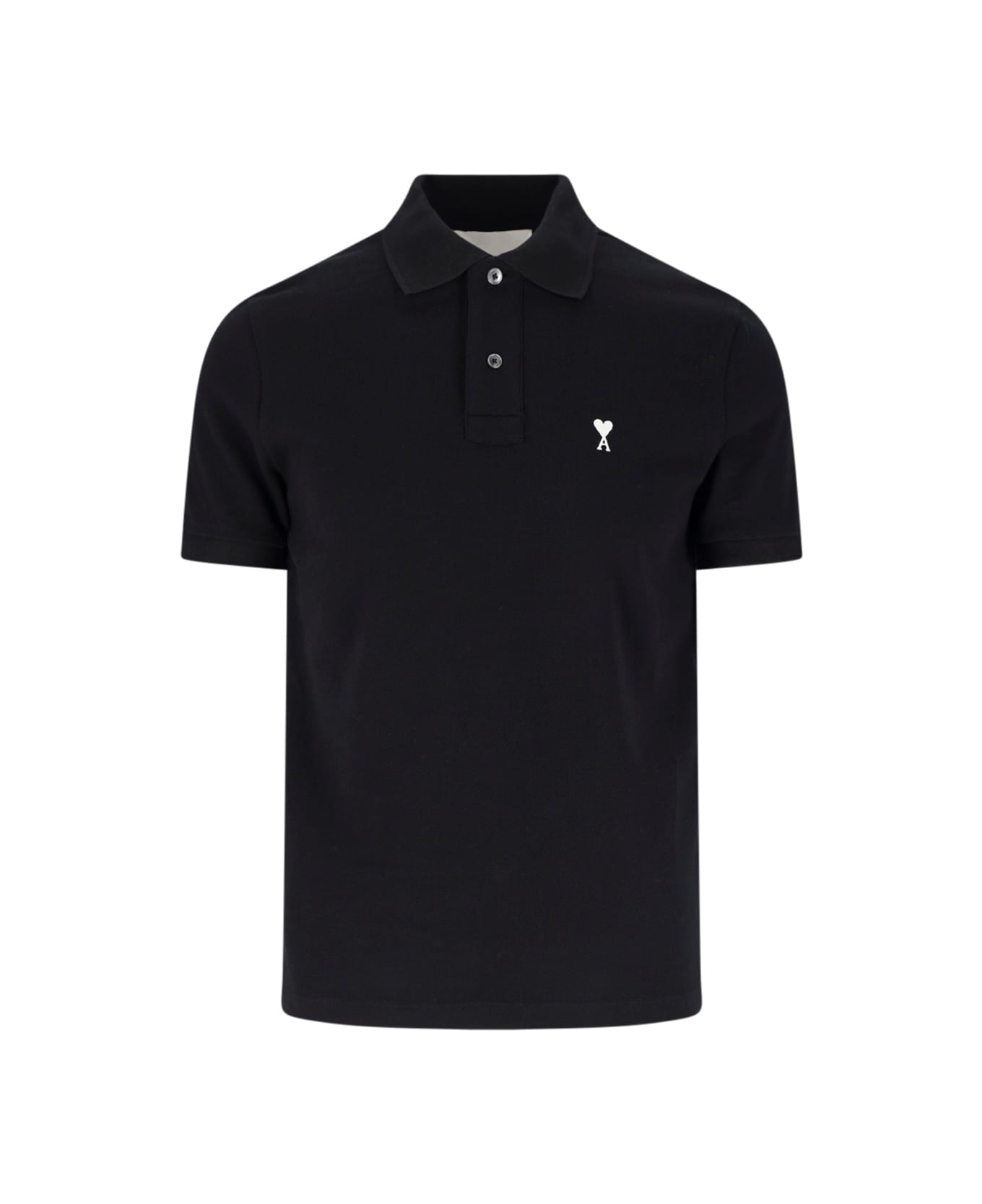 Polo "Ami De C ur" in black cotton, collar, button closure, short sleeves, contrasting embroidered logo on the front. Composition: 100% Cotton