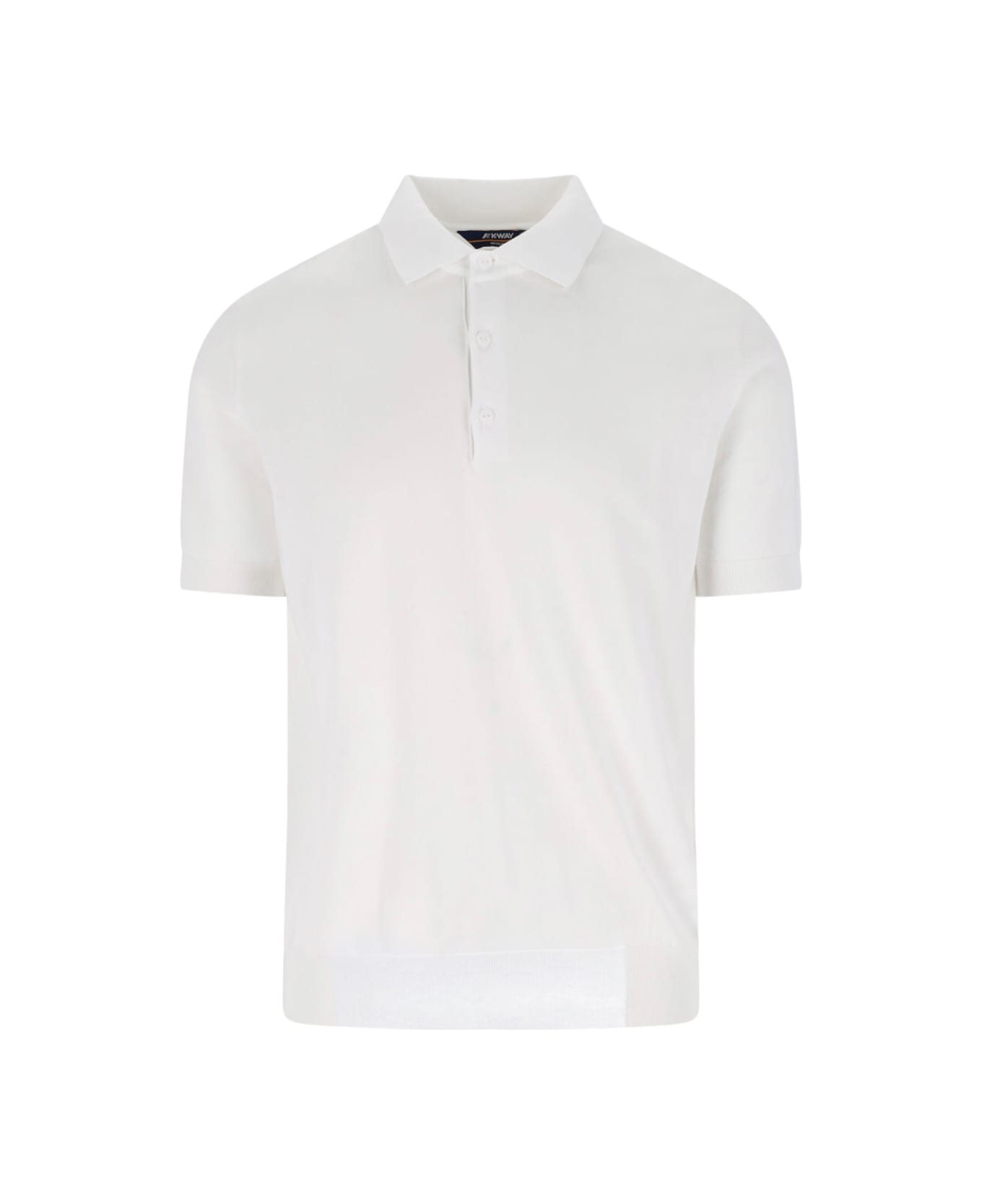 K-Way Pleyne polo shirt in white cotton with classic collar, short sleeves, button closure, multicolor logo detail, ribbed trim, and straight hem.